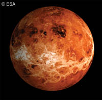 The European Space Agency's (ESA) Venus Express probe has successfully gone into orbit around its target - the Earth's 'sister planet' Venus - after a five month journey of 415 million km. The probe was tracked right up to the point where it met the Venusian atmosphere and began a 50-minute engine burn to slow the probe and place it into position in the Venusian atmosphere. There then followed a tense ten minutes as the probe orbited the roasting planet, occultating the probe. This point is the most critical in the mission, as small errors in the height or velocity could result in the probe flying off course or even crashing. Happily, the probe re-established contact with the ground crew at 09:57 Central European Summer Time on Tuesday 11 April. This confirmed that the probe is moving as expected, and the mission now has a high probability of success. The probe will now regulate its orbit, which will be stable and ready to begin work in June. Venus is thought to contain many clues as to the development of the Earth. Venus is of a similar size to the Earth, although closer to the sun, but within the zone scientists consider suitable for life to develop. The planet has a substantially different mix of gases in its atmosphere, and this could provide important information relating to global warming on Earth. Venus has pressure around 100 times that of the Earth, and because it rotates so slowly, a year on Venus is slightly shorter than a day on Venus. 'Our prime objective is to study the processes that are going on inside Venus' atmosphere, ESA's head of planetary missions, Gerhard Schwehm, told the BBC. 'Nearly all the instruments give us information on either the composition of the atmosphere, temperature profile, or circulation. We want to see how the system works there because there are still many mysteries about Venus.' While the temperature on Earth allows the 'triple point' of water - where water is solid, liquid and gas - Venus has a temperature of some 450 degrees centigrade and clouds of dense carbon dioxide and sulphuric acid. But what puzzles scientists is how this happened. Although Venus is closer to the sun, the difference in energy absorption between this planet and the Earth is small. The obvious candidate is carbon dioxide. Professor Fred Taylor from Oxford University is a key advisor to the Venus Express team, and he believes that, 'On Earth, carbon dioxide is absorbed by the oceans, where it forms carbonate minerals and over the millennia is deposited as rock. That process was arrested early on Venus when it lost its oceans,' he told the Guardian newspaper. Although a great deal is known about Venus, the facts are not clear. For example, Venus has volcanoes, but it is not known whether they are active or whether they resemble the volcanoes on Earth. Part of this problem is that Venus has a thick cloud covering, obscuring much of the detail. The Venus Express will cut through this cloud by peering into 'spectroscopic windows' in the cloud, enabling a vastly improved understanding of our fiery neighbour. The arrival of the Venus probe marks a high-point for ESA, with a string of recent and spectacular successes under its belt, including the SMART-1 moon probe, the Mars explorer, which will keep scientists happy for years with the mountains of data it has sent back, and the Huygens probe, which sent back staggering pictures of Saturn's moon Titan last year. The Venus Explorer also marks a phenomenal turnaround for ESA - the probe was conceived, built and deployed in only five years.