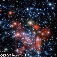 After 16 years of dedicated work, astronomers in Germany, France, the US, Israel and Chile have calculated the orbits of 28 stars at the centre of our galaxy, revealing new information about the massive black hole called Sagittarius A* at the heart of the Milky Way. Their findings, which also provide insight into the formation of stars, are published in the online journal arXiv. 'The centre of the galaxy is a unique laboratory where we can study the fundamental processes of strong gravity, stellar dynamics and star formation that are of great relevance to all other galactic nuclei, with a level of detail that will never be possible beyond our galaxy,' explained Reinhard Genzel of the Max Planck Institute for Extraterrestrial Physics in Germany. Because the central region of the Milky Way is obscured by interstellar dust, the scientists used infrared wavelengths to watch the central stars move around Sagittarius A*. Their observation of the stars' orbits allowed them to infer important properties of the black hole, such as its mass, and to recalculate the distance of the Galactic Centre, a measurement fundamental to existing models of our galaxy. The study began in 1992, when the scientists began gathering high-resolution images of the Galactic Centre region using the SHARP camera, which is attached to the European Southern Observatory's (ESO) 3.5-metre New Technology Telescope in Chile. Starting in 2002, more advanced imaging data was collected using the Naos-Conica (NACO) system, which is mounted on ESO's 8.2-metre Very Large Telescope (VLT), and starting in July 2004 spectroscopic observations were made possible by the SINFONI field spectrometer, also mounted on the VLT. The study has dramatically improved the accuracy by which the positions of the stars may be measured. The precision of their calculation is within 300 microarcseconds, the equivalent to seeing a one-euro coin from a distance of roughly 10,000 km. The observations allowed the scientists to update the estimate of the distance to the Galactic Centre, an important calculation. One of the main achievements of the study was an observation of a complete orbit of a star named S2, one of the brightest observed, which accomplished a full revolution of the Milky Way's centre in about 15 years. (For comparison, the Sun's galactic rotation period is around 200 million years.) This observation of a complete orbit made the high accuracy of the calculations possible. Interestingly, though, the researchers noted that at a certain point the brightness of S2 and its velocity changed; an explanation of this variation remains a matter of fascinating debate. The study obtained orbits for 20 early-type stars. This major increase in the number of known orbits allows scientists to look for common properties amongst them, thereby characterising this central population of stars. 'The stars in the innermost region are in random orbits, like a swarm of bees,' said lead author Stefan Gillessen of the Max Planck Institute for Extraterrestrial Physics. The scientists determined the orbits of six late-type stars in this region for the first time, and also confirmed earlier speculation that six early-type stars orbit the black hole clockwise, in a disc. Much can be learned about the origin of the central stars by determining the properties of their orbits. The scenarios for the formation of these stars remain a focus of ongoing study, as they are too young to have migrated there, but probably did not form in their current orbits, where the tidal forces of the black hole hold sway. Based on their observations, the astronomers speculated that in addition to the massive black hole, a substantial amount of mass in the form of a cluster of 'dark stellar remnants' might reside around the black hole. 'Undoubtedly the most spectacular aspect of our long-term study is that it has delivered what is now considered to be the best empirical evidence that super-massive black holes do really exist,' said Mr Genzel. 'The stellar orbits in the Galactic Centre show that the central mass concentration of four million solar masses must be a black hole, beyond any reasonable doubt.' 'The next major advance will be to combine the light from the four 8.2-metre VLT unit telescopes - a technique known as interferometry,' said Frank Eisenhauer, principal investigator of the next generation instrument GRAVITY. 'This will improve the accuracy of the observations by a factor 10 to 100 over what is currently possible. This combination has the potential to directly test Einstein's general [theory of] relativity in the presently unexplored region close to a black hole.'