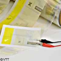 Le projet ROLLED, financé par l'UE, est parvenu à développer une source de lumière flexible OLED (diode électroluminescente organique) qui pourrait servir dans de nombreuses applications, notamment pour rendre les emballages plus attrayants. D'après les partenaires du projet, l'utilisation de techniques d'impression en roulage permet de produire en masse l'élément OLED flexible. Le projet a été financé à hauteur de 2,25 millions d'euros au titre du domaine thématique «Technologies de la société de l'information» du sixième programme-cadre (6e PC). Coordonné par le Centre de recherche technique VTT de Finlande, l'objectif visé par le projet ROLLED était de mettre au point une technologie de fabrication par roulage peu onéreuse et à l'échelle de masse volumique, pour la production de diodes électroluminescentes organiques (OLED) flexibles, possédant des pixels de taille et de forme arbitraires, expliquent les chercheurs. D'après les partenaires du projet, cette méthode est plus rentable que les méthodes de production classique. En effet, l'équipement servant à fabriquer les diodes électroluminescentes organiques est moins coûteux, et la vitesse de production est plus élevée en comparaison de la méthode traditionnelle. Le prix de fabrication de chaque OLED ne s'élève qu'à quelques dizaines de centimes d'euros. Les chercheurs étudient actuellement d'autres applications dans l'espoir de réduire davantage le coût. Ils pensent que l'utilisation de cet élément dans le développement d'un certain nombre de produits et dans différents lieux, notamment les rayons de supermarché et les affiches, pourrait attirer les consommateurs. Ces éléments disposent d'autres avantages; en effet, ils pourraient permettre de contrecarrer les projets de copies de produits en les reliant à des capteurs capables de déterminer la fraîcheur des aliments conditionnés. Les sources de lumière innovantes sont similaires aux lumières LED. Toutefois, les éléments OLED consomment peu d'électricité, et, étant fabriqués à base de matériaux organiques, ils peuvent être produits au moyen de méthodes d'impression sur des surfaces larges et flexibles. Ce type de production les rend particulièrement adaptés aux emballages. L'élément est encapsulé dans un film étanche à l'humidité et a une épaisseur de 200-250 micromètres, ce qui équivaut à 3 ou 4 feuilles de papier, explique l'équipe. Parmi les partenaires du projet figurent le Centre suisse d'électronique et de microtechnique, l'Institut Leibniz pour les nouveaux matériaux en Allemagne, PolylC (une entreprise allemande spécialisée dans l'impression électronique) et UPM (une entreprise finlandaise impliquée dans l'industrie forestière). Le groupe suisse était chargé de développer de nombreuses technologies de photogravure, tandis que l'Institut Leibniz s'est penché sur la mise au point d'anodes et de barrières. Parallèlement au développement du processus d'impression, le Centre de recherche technique de Finlande a créé une cathode pourvue d'une fonction de travail faible qui améliore les performances des composants tout en réduisant la consommation d'énergie et la tension d'alimentation. Ces éléments peuvent être utilisés dans tous les composants électroniques destinés à l'impression, tels que les cellules solaires et les transistors. Les chercheurs ont soumis cette méthode de production à deux tests. Le premier essai a mis à l'épreuve un élément OLED à deux couleurs connecté à l'emballage d'un produit. Une lumière verte se déclenchait lorsque le produit était emballé. Une fois l'emballage ouvert, le fusible sautait et la lumière verte se transformait en une croix rouge. Quant au second test, il a montré qu'un téléphone pourvu de la technologie de communication en champ proche (NFC pour near field communication) pouvait allumer l'élément OLED. Les chercheurs ont utilisé une carte de visite affichant le drapeau de l'UE; les étoiles, équipées de ces éléments, s'allument lorsque le téléphone NFC se trouve à proximité de la carte. D'après le directeur de technologie de VTT, Arto Maaninen, les premiers éléments OLED seront commercialisés d'ici deux ans.