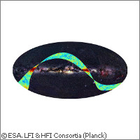 L'observatoire spatial Planck a terminé son étude du ciel sur deux semaines, apportant des observations du fond diffus cosmologique de notre galaxie, avec une sensibilité et des détails sans précédent. Ces nouvelles informations peuvent être utilisées par les cosmologistes et les astrophysiciens afin de calculer avec plus de précision des détails concernant l'âge et la composition de l'univers. Le satellite Planck a été lancé par une fusée Ariane le 14 mai, depuis Kourou, en Guyane française, en même temps que l'observatoire Herschel. Il a atteint 6 semaines plus tard son site d'observation (à environ 1 million de milles de la Terre). Herschel et Planck sont deux missions importantes soutenues par l'Agence spatiale européenne (ESA) ainsi que par des institutions académiques et des consortiums industriels. Extrêmement sensible, le télescope Plank peut détecter des différences de température de l'ordre d'un millionième de degré. En raison de son instrumentation unique (soit ses Low-Frequency Instrument et High-Frequency Instrument), il peut mesurer les fluctuations du fonds diffus cosmologique avec une exactitude sans précédent. Le Low-Frequency Instrument (LFI, instrument basse fréquence) est composé de 22 récepteurs radio accordés, situés sur le plan focal du télescope Planck. Le High-Frequency Instrument (HFI, instrument haute fréquence) est composé de 52 détecteurs «bolométriques» (qui mesurent l'énergie de rayonnement) situés sur le plan focal du télescope. Le télescope peut ainsi balayer le ciel à différentes fréquences entre 100 et 857 GHz. La conception et la construction des deux instruments résultent d'une collaboration internationale entre des scientifiques et des ingénieurs d'Europe et des États-Unis. Les deux semaines d'observation continue par Planck se sont traduites par des images très détaillées de l'univers ancien. Neuf cartes ont été produites, une pour chaque fréquence de Planck. En observant à différentes fréquences, Planck peut séparer le fond diffus cosmologique de la lumière émise par la galaxie aux mêmes fréquences. L'observatoire peut ainsi détecter et caractériser le gaz et la poussière, et les cartes produites à neuf fréquences différentes permettent de distinguer des sources isolées d'énergie micro-onde à une échelle sans précédent. Le professeur Richard Davis de l'université de Manchester au Royaume-Uni, qui a dirigé le développement de l'instrument LFI, commente: «La réalisation de Planck a duré 16 ans, et nous arrivons au moment le plus passionnant. Le plus merveilleux c'est que Planck, depuis son poste d'observation à un million de milles de la Terre, génère maintenant des images de la création de l'univers, lors du fameux Big Bang, avec une précision jamais vue.» Planck a été conçu pour fonctionner pendant 15 mois, au cours desquels il collectera des données pour deux cartes indépendantes de la totalité du ciel. Les chercheurs ont désormais la rare opportunité d'analyser la grande quantité de données sur l'enfance de l'univers collectées par l'instrument Planck extrêmement sensible; les futures missions devraient éclairer encore plus notre compréhension du cosmos.