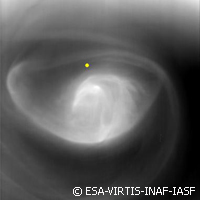 Latest updates from the Venus Express mission of the European Space Agency (ESA) reveal that the atmosphere high above the morning star's poles is 60% thinner than expected. A series of low passes has taken the spacecraft directly through the upper reaches of the planet's poisonous atmosphere. This experiment, unprecedented for Venus, has returned 10 measurements to date. The campaign began in July 2008 and has, so far, involved low passes in August 2008, October 2009, February 2010 and April 2010. It is expected to deliver crucial information on the density of the Venusian atmosphere, which extends from the surface up to an altitude of approximately 250 kilometres (km). The spacecraft currently circles Venus on a highly elliptical 24-hour orbit, a round trip that takes it down to an altitude of 250 km from the surface and back out to a distance of 66,000 km. During the remote part of the orbit, the Venus Express is affected by the gravity of the Sun, which pulls it slightly off course. Course adjustments are needed every 45 days or so, at which point the engines are fired to compensate. The fuel required for these course corrections will run out in 2015. Reliable density data would enable the mission controllers to assess the scope to move the spacecraft into a lower orbit. This would help to preserve precious fuel and further extend the lifetime of the mission, prolonging an adventure which has already outlasted initial expectations. However, says team member Dr Pascal Rosenblatt of the Royal Observatory of Belgium: 'It would be dangerous to send the spacecraft deep into the atmosphere before we understand the density.' The team is currently considering options to use the drag of the planet's atmosphere to place the Venus Express on a closer orbit. This change could halve the time needed to circle the planet and would also open up opportunities for further measurements. Establishing the new orbit would, however, involve some very intricate manoeuvering and could transform the spacecraft's easy relationship with Venus into a fatal attraction. 'The timetable is still open because a number of studies have yet to be completed,' says Dr Hakan Svedhem, ESA Project Scientist Venus Express. 'If our experiments show we can carry out these manoeuvres safely, then we may be able to lower the orbit in early 2012.' Whatever the decision, the ability to take these measurements is an achievement in its own right, as the craft's instrumentation was not designed to sample the atmosphere directly. Instead, density is calculated on the basis of deceleration, observed by radio tracking stations on Earth as the spacecraft dips into the atmosphere and is slowed down by the Venusian equivalent of air resistance. Extending the scope for observation, operators at ESA's European Space Operations Centre in Darmstadt, Germany have also positioned the spacecraft's solar wings in a way that causes it to twist as it enters the atmosphere. To create the spin, one of the wings is placed face-on, while the other is turned edge-on. This particular feature has revealed considerable differences in atmospheric density between the day side and the night side of the planet. So far, Venus Express has managed to dive 75 km into the atmosphere, during a low pass in April 2010 which took it down to 175 km above the surface. An attempt at 165 km is scheduled during the week of 11 October. Beyond considerations about narrower orbits and extended lifetimes, these unexpected glimpses into an alien world have already delivered exciting new input. 'We couldn't see this region with our instruments because the atmosphere was too thin to register, but now we are sampling it directly,' says team leader Dr Ingo Mueller-Wodarg of Imperial College London in the UK. The mission scientists are currently investigating the reasons for the intriguing low density above the planet's poles, a phenomenon that may hint at unanticipated natural processes.