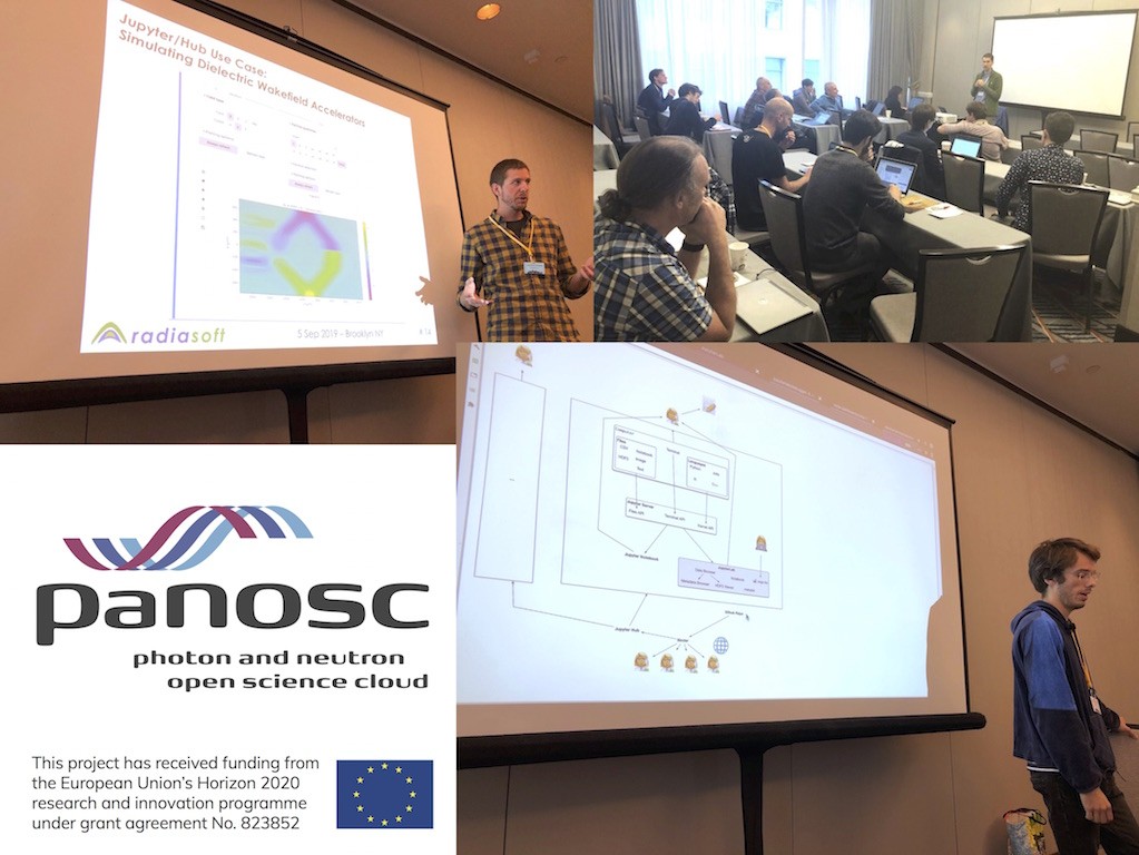The PaNOSC Jupyter workshop took place on October 5th at ICALEPCS2019 in New York City. Download the event's material from this link >> http://bit.ly/31Vo5wS(opens in new window) The satellite meeting started with a brief introduction by Hans Fangohr – leader of WP4: Data Analysis Services – to the Jupyter Notebook* and the ecosystem of tools that are based on it, i.e. JupyterHub, JupyterLab, NBDIME, NBVAL, Binder. Status updates from Soleil, CERN, European Southern Observatory, J-PARC MLF, Max IV, ESS and the Brookhaven National Laboratory allowed different facilities and participants to show the current, planned or desired use of Jupyter at their facilities or elsewhere, presenting both their positive and negative experiences to help others in their planning. A two-hour tutorial gave an overview of the JupyterLab notebook interface to show how it can be used for more than just editing notebooks, and how to create a plugin that adds custom functionality to the interface. In addition, existing extensions that target the scientific ecosystem were shown, including support for exploring HDF5 files. The tutorial ended with an exploration of new features coming to JupyterLab, including real time collaboration. After an overview by RadiaSoft representative, Dr. Jonathan Edelen, on the possible uses of Jupyter for the simulation of particle accelerators, the workshop ended with a Q&A session. *Jupyter Notebook and associated tools from Project Jupyter (such as JupyterLab, JupyterHub, BinderHub, Binder, nbval, nbconvert, nbmerge) are becoming a key tool in data science, computational science and data analysis. They are increasingly used at research facilities. Users include support teams, facility scientists and users.