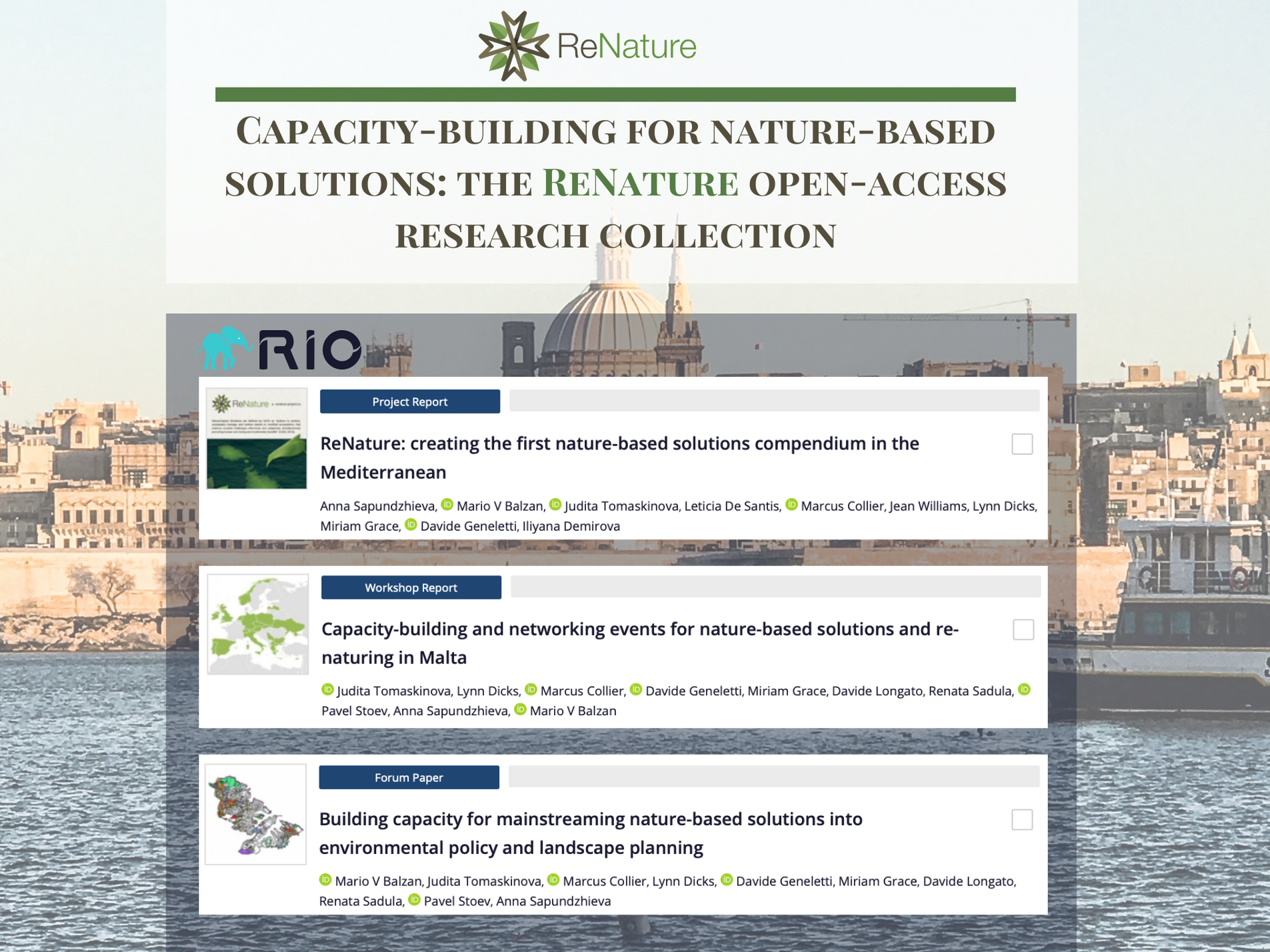 The ReNature project has recently launched a collection(öffnet in neuem Fenster) of research articles, which will host key outputs relating to the sustainable use of biodiversity and green infrastructure across rural-urban gradients, the equitable access to the benefits derived from nature in cities and socio-environmental justice, and the nature-based solutions design. The collection consists of three open access articles and will soon be further enhanced with other project outputs. The ReNature assortment of research articles is freely accessible in the Research Ideas and Outcomes (RIO)(öffnet in neuem Fenster) journal - a peer-reviewed open-access scientific journal, which has the goal to promote transparency, reliability, and effectiveness in scientific research, as it encompasses the full research cycle. WHY NATURE-BASED SOLUTIONS? Nature-based solutions (NbS) is a term often used to refer to adequate green infrastructure that provides multiple benefits to society whilst addressing societal challenges. NbS have the potential to build climate resilience and tackle key societal challenges while also providing multiple co-benefits to biodiversity and human well-being. The demand for nature-based innovation is strongly felt in Malta – a small island state, with the highest population density in the European Union. Against this background, ReNature has the goal to develop research excellence in this sector at the Malta College of Arts, Science and Technology (MCAST), and across the research, policy, business and stakeholder community. ReNature is establishing and implementing a nature-based solutions research strategy for Malta with a vision to promote research and innovation and develop sustainable solutions whilst improving human well-being and tackling environmental challenges. Here, we introduce the opening of the ReNature collection of research articles in the RIO journal, where diverse research outputs can be found. THE FIRST NATURE-BASED SOLUTIONS COMPENDIUM IN THE MEDITERRANEAN A central part of ReNature’s collection is nature-based solutions compendium which aims to create a transition from theoretical knowledge and good practices in advanced research institutions to actual future application. Thus, the compendium’s development is vital for the establishment of this transition. The abridgement is an open-source collection, which contains data on nature-based solutions in Malta. Initially collecting information only about Malta, the compendium is currently growing to include submissions from across the Mediterranean region. The development of an open-source compendium further plays an essential role in the co-creation of knowledge, and fostering capacity-building at a national and international level, which are key objectives of ReNature. The platform is giving examples of good practices for practitioners and the research community. STRATEGICALLY DESIGNED TRAINING COURSES The ReNature consortium has implemented capacity-building events, supporting the spread of knowledge and utilisation of NbS. Six training courses were carried out within the first 18 months of ReNature, aiming to enhance the institutional research capacity and to develop stronger links between research, policy, and the business and stakeholder community. As such, the project is helping to position Malta as a front-runner country in research and innovation, and in the generation of novel NbS that tackle environmental challenges faced by modern societies. Resulting from this set of training courses, twelve presentations are available in one of ReNature’s articles(öffnet in neuem Fenster), which cover a large scope of topics related to the implementation of NbS. ReNature will publish another round of learning outputs, deriving from the rest of the training activities planned within the purview of the project. Find the collection here(öffnet in neuem Fenster).
