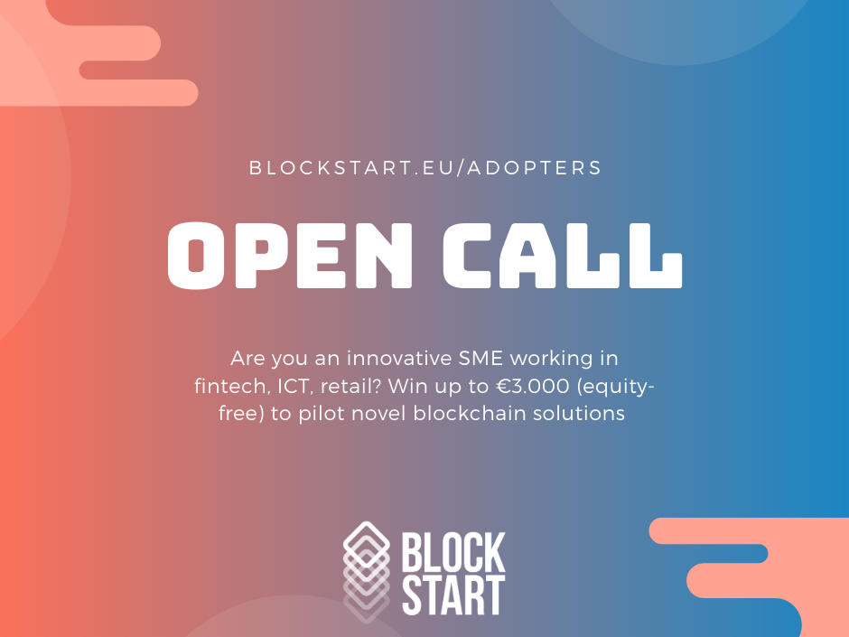 BlockStart (www.blockstart.eu) is a pan-European DLT/blockchain partnership programme. Its main objective is to facilitate goal-oriented, business-focused, and mutually beneficial partnerships between DLT/blockchain solution providers and end-user SMEs. In its 2nd Open Call(opens in new window), BlockStart was looking for seed-, early- and growth-stage DLT/blockchain startups from all over the EU and H2020 Associated Countries. This 3 stage-immersive partnership programme (Ideation Kick-off > Prototype > Pilot) manages a fund of €795,000 aimed at financing DLT/blockchain technologies in the fields of fintech, ICT and retail, with selected startups receiving up to €20,000 equity-free funding per pilot. After an intense selection and evaluation process, the top 10 DLT/blockchain developers have been selected to further develop their Minimum Viable Product (MVP) for the next 4 months, with the support of BlockStart. After this, only 5 will be selected for the programme’s Pilot stage, and partner with innovative SMEs willing to adopt the blockchain-based solutions developed in the scope of the Acceleration Programme. THE OFFER One of the main objectives of BlockStart is to encourage collaboration between end-user SMEs and potential DLT/blockchain specialists, as technology providers, and to promote knowledge about the benefits and opportunities of these technologies. This collaboration is of utmost importance in the Pilot stage of BlockStart’s Partnership Programme, where startups will have the chance to test their solutions together with end-user SMEs. SME adopters will benefit from up to €3,000 equity-free funding and will have the chance to implement DLT/blockchain pilot solutions with BlockStart’s top 10 startups that have gone through the previously described programme. OUR TOP STARTUPS Access our website https://www.blockstart.eu/adopters/(opens in new window) to find out who are our top 10 blockchain/DLT developers and what blockchain-based solutions they are developing in the scope of BlockStart. HOW TO APPLY Any European or H2020 Associated Country SME operating in the fields of fintech, ICT and retail is eligible as a participant and should fill in an online application form at the F6S platform: https://www.f6s.com/blockstartcallforend-usersmes2/apply(opens in new window) Deadline for applications is March 11th at 5pm CET (Brussels Time). For more information on application criteria and how to apply, you can go to www.blockstart.eu and consult our FAQ section: https://www.blockstart.eu/open-calls/faq/(opens in new window) THE BLOCKSTART CONSORTIUM BlockStart is run by a team of 3 partners: Bright Pixel(opens in new window), an early-stage VC investor, CIVITTA(opens in new window), a leading innovation management consultancy in Eastern and Central Europe, and F6S(opens in new window), a global tech founders’ community. This project has received funding from the EU’s Horizon 2020 programme. Follow BlockStart on Social Media at www.twitter.com/BlockStartEU(Twitter) www.facebook.com/BlockStartEU(Facebook) and www.linkedin.com/company/blockstarteu(LinkedIn) to keep track of everything that is going on, such as upcoming Q&A Webinar dates on the 2nd Open Call. The next ones will take place on September 10th and 23rd at 11am CET (Brussels Time) and you can book your ticket here: 1st webinar(opens in new window) and 2nd webinar(opens in new window). More information: Coordinator: João Fernandes (fernandes@brpx.com) Contact press: Nadine Teles (nadine@f6s.com) Telegram: t.me/blockstart