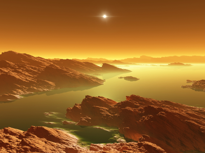 Mit einer Oberflächentemperatur von etwa -200 °C hört sich Titan nicht gerade wie ein gastlicher Ort an. Allerdings könnte dieser eisige Mond, der um den Saturn kreist, die Bausteine des Lebens beherbergen – und eine geeignete Umgebung bereitstellen, um sie zusammenzusetzen. Der Titan ist doppelt so groß wie unser Mond und weist verblüffende Ähnlichkeiten mit der Erde auf: Sein Klima beruht auf einem Flüssigkeitskreislauf mit Wolken und Regen sowie Flüssen, Seen und Meeren. Er ist auch der einzige bekannte Mond mit einer dicken Atmosphäre. Das Projekt PRIMCHEM (Primitive chemistry in planetary atmospheres: From the upper atmosphere down to the surface)(öffnet in neuem Fenster), das vom Europäischen Forschungsrat(öffnet in neuem Fenster) unterstützt wird, hat nun herausgefunden, dass die in dieser Atmosphäre stattfindenden chemischen Interaktionen die Entstehung von Lebensformen ermöglichen könnten. Organische Verbindungen, die sich in allen lebenden Organismen wiederfinden, sind Moleküle, in denen Kohlenstoffatome an Wasserstoff gebunden sind. Sie können zahlreiche andere Elemente namens Heteroatome enthalten, darunter auch Stickstoff. Stickstoff ist ein wichtiger Bestandteil der Struktur von Proteinen und DNA-Basen. „Die Atmosphäre des Titan besteht vor allem aus molekularem Stickstoff und Methan. Wir konnten aufzeigen, dass Stickstoff in großen Höhenlagen organisches Wachstum vorantreibt und große Moleküle bildet“, erklärt Nathalie Carrasco, Hauptforscherin von PRIMCHEM und Professorin für Geowissenschaften an der Universität Versailles-Saint-Quentin-en-Yvelines(öffnet in neuem Fenster), die als Projektträger fungiert. Auf dem Titan herrscht eine ideale Atmosphäre, um das Szenario eines atmosphärischen Ursprungs der Einbindung von Stickstoff in präbiotische Moleküle zu erforschen, sagt sie: „Die oberen Schichten der Atmosphäre sind direkt starker UV-Strahlung der Sonne ausgesetzt, was sehr effiziente chemische Reaktionen auslöst.“