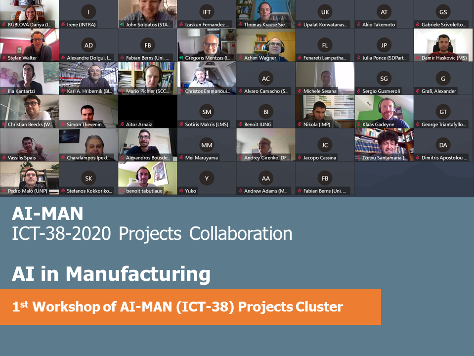 Nine projects funded under the ICT-38-2020 Call and focusing on integrating state-of-the-art AI technologies in the manufacturing domain joined their forces towards more effective work on AI in manufacturing. The AI-MAN cluster, supported by EFFRA(opens in new window) and the Connected Factories(opens in new window) project, aims at exploiting synergies between the projects and increasing their impact. The first of a series of ICT-38 Projects Cluster (AI-MAN) workshops that took place last month aimed to make the participants aware of each project’s objectives, activities and technologies that are being developed and to further expand the potential areas of collaboration. The next steps include, among others, making full use of the mutual communication and dissemination actions, participating in joint events, to organise a series of joint open/public workshops, collaborating in production and sharing the AI assets, joint publications and common standardization activities. A specific shared space for the cluster is also envisaged and the work for its implementation is already under way. More than 50 people from the ICT-38 projects, the AI REGIO(opens in new window) project and EFFRA joined the workshop looking forward to further strengthen the projects’ collaboration and making the best of AI in manufacturing! ICT-38-2020 projects: AI-PROFICIENT (Artificial Intelligence for improved PROduction efFICIEncy, quality and maintenance – 957391) ASSISTANT(opens in new window) (leArning and robuSt deciSIon SupporT systems for agile mANufacTuring environments – 101000165) COALA(opens in new window) (COgnitive Assisted agile manufacturing for a LAbor force supported by trustworthy Artificial Intelligence – 957296) EU-Japan.AI(opens in new window) (Advancing Collaboration and Exchange of Knowledge Between the EU and Japan for AI-Driven Innovation in Manufacturing – 957339) knowlEdge (Towards AI powered manufacturing services, processes, and products in an edge-to-cloud-knowlEdge continuum for humans [in-the-loop] – 957331) STAR(opens in new window) (Safe and Trusted Human Centric Artificial Intelligence in Future Manufacturing Lines – 956573) MAS4AI(opens in new window) (Multi-Agent Systems for Pervasive Artificial Intelligence for assisting Humans in Modular Production Environments – 957204) TEAMING.AI(opens in new window) (Human-AI Teaming Platform for Maintaining and Evolving AI Systems in Manufacturing – 957402) XMANAI(opens in new window) (Explainable Manufacturing Artificial Intelligence - 957362)