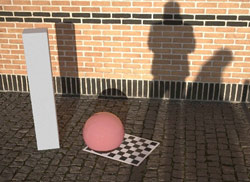 Innerhalb des BENOGO-Projekts konzentrierte man sich auf die Entwicklung neuer Tools, die den Menschen ein Erlebnis der Anwesenheit an realen und vielleicht unbekannten Orten verschaffen, ohne dass sich diese tatsächlich an diese Orte begeben müssen. Dazu wurden innovative Kameratechnologien weiterentwickelt, die eine realistische dreidimensionale Visualisierung realer und vielleicht unbekannter Orte für den sich bewegenden Beobachter ermöglichen. Auf der Basis der hochmodernen Image Based Rendering (IBR) Technologie ermöglichen die entwickelten Verfahren die Erzeugung neuer Bilder aus anderen Bildern, keinen Grafiken. Bei der Wiedergabe der erweiterten virtuellen Objekte imitieren die eingesetzten IBR-Verfahren die Lichtverhältnisse des realen Schauplatzes. Dabei sind virtuelle Objekte, die ohne Beleuchtung zur Verfügung gestellt werden, weniger gut erkennbar als die erweiterten Objekte. Nachbildung des Beleuchtungsumfeldes für einen statischen Schauplatz, Neubelichtung der Bilder realer Schauplätze und Abschätzung der sich ändernden Lichtverhältnisse von im Freien befindlichen Schauplätzen bildeten die drei behandelten Hauptbereiche. Alle entwickelten Unterverfahren sind in interaktiven Echtzeit-Systemen der erweiterten Realität anwendbar, die zum Zwecke der Unterhaltung oder Bildung und sogar zur Prototypengestaltung und für interaktive Gerätereparaturen eingesetzt werden können. Es wurde ein Mustersystem der weiterten Realität entwickelt, das durch Schwenken und Kippen eines an einem Mast montierten Flachbildschirms die Erkundung eines realen Schauplatzes ermöglicht. Auf dem Bildschirm wird eine Videosequenz der realen Welt mit beliebigen Erweiterungen gezeigt, zum Beispiel historische Gebäude oder Veranstaltungen. Bei allen Erweiterungen entsprechen die nachgebildeten Lichtverhältnisse denen des realen Schauplatzes und machen diese beinahe fotorealistisch. Foto: Mithilfe der neusten Fortschritte bei der Beleuchtungsbewertung für Erweiterte Realität ist es möglich, virtuelle 3D-Objekte in einer Umgebung mit den realen Licht- und Schatteneigenschaften zu visualisieren.