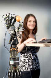 D'après Bill Gates, nous aurons bientôt tous un robot à la maison. Et il semblerait que nous soyons à l'aube de la robotique: des systèmes intelligents et cognitifs font leur apparition un peu partout. Les caméras et capteurs infrarouges sur les consoles de jeux vidéo montrent bien que nous pouvons contrôler certains dispositifs en parlant ou en bougeant les mains. Même certains aspirateurs peuvent faire le ménage dans la maison pendant que vous êtes au travail. Mais l'un des grands problèmes que la communauté de la robotique a tenté de résoudre est celui de la manipulation. «Nous ne parlons pas de pinces», insistent le professeur Bruno Siciliano de l'université de Naples, en Italie (Università degli Studi di Napoli Federico II). «Les robots industriels peuvent déjà attraper des choses et les reposer. Si les robots doivent vraiment transformer la vie tout en collaborant avec les hommes, ils doivent pouvoir manipuler les objets de la même manière que les hommes le font. La manipulation est une tâche complexe que les robots doivent apprendre à maîtriser.» En tant que coordinateur du projet Dexmart(s’ouvre dans une nouvelle fenêtre) (1), le professeur Siciliano a dirigé une équipe de chercheurs en robotique qui a développé une main anthropomorphique robotisée à cinq doigts qui peut tenir des œufs, ramasser et tourner une carte de crédit ou prendre un stylo dans les mains d'une autre personne. «Nous avons utilisé cette main comme modèle», explique le professeur Claudio Melchiorri de l'université de Bologne, en Italie, où le prototype a été développé, «car elle constitue l'exemple parfait de la manipulation en toute agilité.» Le projet souhaitait fabriquer une main ressemblant et bougeant autant que possible comme une main humaine. Jusqu'à présent cependant, aucun laboratoire de robotique n'était parvenu à construire des mains ressemblant aux mains humaines de la bonne taille. «Nous avons suivi une idée simple bien qu'efficace: en utilisant des cordes actionnées par de petits moteurs rapides, nous avons pu exercer des forces de traction dans un espace limité», explique le chercheur en mécatronique Chris May de l'université de la Sarre, en Allemagne. La main robotisée est capable de toucher différents objets, les saisir et les soulever pour les placer dans une nouvelle position. Cette nouvelle solution d'actionneur a été démontrée sur la main développée dans le cadre du projet Dexmart; en effet, elle pouvait manipuler un œuf de Pâques, objet délicat, et une bouteille en verre, relativement lourde. Ces cordes actionnées sont faites de polymères solides et permettent au prototype de la main de soulever une charge de cinq kilogrammes de 30 mm en moins d'une seconde, en se servant de petits moteurs électriques situés sur l'avant-bras et non les articulations, ce qui permet de donner à la main la bonne dimension. «Chaque doigt, composé de trois segments comme un doigt humain, peut être contrôlé avec précision grâce à des tendons individuels», explique le chercheur Gianluca Palli de l'équipe de Bologne. «La capacité de cette main humaine est pratiquement similaire à celle de l'homme, ce qui rend le rêve d'avoir des assistants personnels à domicile, dans une salle de contrôle ou dans un environnement industriel pratiquement réaliste. Nous pensons que l'association de petits moteurs électriques raccordés par des cordes est très intéressante pour d'autres applications.» Un cerveau pratique Cette main a aussi un cerveau. «L'un des objectifs de la robotique, et notamment pour les robots de compagnie et d'assistance dans la société, est de parvenir à ce qu'ils deviennent autonomes», explique le professeur Siciliano. «Les robots doivent répondre à des situations données de manière appropriées et pas forcément préprogrammées. Ils doivent pouvoir décider de l'action à prendre et également travailler le mouvement adéquat pour y parvenir.» Mais quelle est la meilleure façon de donner à ces robots la puissance cognitive? D'après le professeur Siciliano, les robots, tout comme les hommes, doivent apprendre en observant. Une équipe de chercheurs de l'université de Karlsruhe en Allemagne, de l'université de Naples et de la société britannique d'informatique OMG, a utilisé la technologie de traitement d'image pour étudier les détails les plus fins des mouvements des mains de l'homme. Ils ont équipé de marqueurs visuels un gant spécial doté de capteurs qu'ils portent sur leurs mains, et leur ont demandé de procéder à diverses manipulations qui ont été filmées. Les algorithmes de traitement de l'image permettront de suivre les mouvements sur chaque marqueur et d'utiliser ces données pour créer des règles sur la façon dont les mains robotisées doivent manipuler des objets spécifiques. Des mécanismes de contrôle efficaces, sûrs et adaptatifs sont essentiels pour la manipulation robotique complexe. Cependant, essayer de coordonner les mouvements de cinq doigts, tous dotés de quatre articulations, est un procédé extrêmement difficile. «Si vous regardez chaque articulation et ce que chaque moteur est censé faire, vous êtes confrontés à plus de 20 ordres de liberté, ce qui est bien trop complexe», explique le professeur Siciliano. Son groupe de recherche de l'université de Naples s'est inspiré de la biologie pour simplifier le problème. «La recherche sur le contrôle et la coordination des mains humaines montre que l'on ne contrôle pas chaque articulation indépendamment; notre cerveau contrôle toutes les articulations en même temps de manière coordonnée. Les neuroscientifiques ont montré que les positions et mouvements des mains humaines peuvent être simplifiés par ce que l'on appelle les 'synergies de posture'. Ces trois synergies peuvent décrire près de 80% de toutes les actions et positions possibles pour attraper un objet», explique Fanny Ficuci