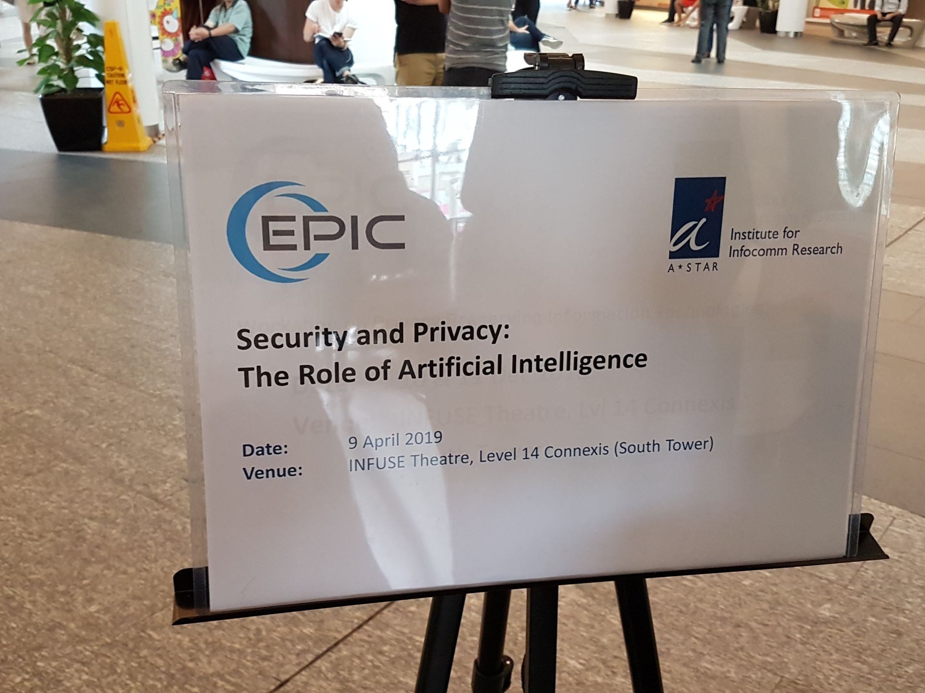 On April 9th, the EPIC project, in collaboration with A*STAR’s Institute for Infocomm Research (I²R) and AI Singapore, hosted the event ‘Security & Privacy – The Role of Artificial Intelligence’ at Singapore’s INFUSE Theatre. The theme was how security and privacy have become major concerns for private citizens, for industry and for policy makers. Particular emphasis was placed on the dual role of artificial intelligence (AI) in this domain both as a source of concern but also as a source of potential solutions.