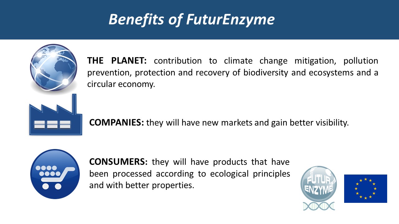 Our world faces major environmental threats including climate change. Enzymes as green catalysts can alleviate these problems by creating more environmentally friendly consumer goods, e.g. detergents, textiles and cosmetics. In 2024, global liquid laundry detergent volume reached approximately 20 million metric tons. The textile fiber production totaled around 120 million metric tons, with these fibers being processed into yarns and fabrics using ‘spinning additives’, up to 5%. The global hyaluronic acid market exceeded 2,156 metric tons, with about 45–50% used in Beauty & Personal Care. These products and their associated processes are highly resource-intensive, but enzyme innovations can offer substantial environmental benefits without compromising product performance. If industries could significantly reduce their environmental impact by replacing traditional chemical processes with enzymatic solutions, environmentally conscious consumers would be able to choose products made with fewer chemicals, less waste, and greater care for the environment, truly driving sustainable production and consumption. However, despite the enormous potential of enzyme technology, enzymes have been underutilized in the detergent, textile, and cosmetic sectors, with challenges in efficiency, scalability, and affordability hindering their adoption in real-world consumer product manufacturing. One of the biggest challenges is finding and producing the right enzyme for each task, process, and product. This is why, established in 2021, the FuturEnzyme project—comprising 8 universities/research institutions, 3 small and medium enterprises, 2 clusters, and 3 industries from 7 countries—is dedicated to developing enzyme-based innovations for the real-world production of consumer goods. More specifically, FuturEnzyme aimed to first deliver low-cost, eco-friendly enzymes. Instead of focusing on general enzyme discovery, the project prioritized delivering enzymes for existing market products, making them greener and more innovative based on their specific composition and use. With these enzymes, the project aimed to develop: 1) a prototype of a liquid laundry detergent using enzymes as key ingredients to break down stains at lower temperatures; 2) a gentle enzymatic process to produce a low molecular weight hyaluronic acid product for cosmetic formulations; and 3) a gentle enzymatic pre-treatment to remove spinning additives from synthetic fabrics. By embracing enzyme technology, FuturEnzyme contributes to building a world where industrial progress goes hand-in-hand with environmental responsibility, leading to cleaner products, more efficient processes, and a healthier planet for all. These innovations are directly aligned with the European Union’s (EU) safety and sustainability goals under the European Green Deal, the Circular Economy Action Plan, the Safe and Sustainable by Design (SSbD) framework, and the Clean Industrial Deal.