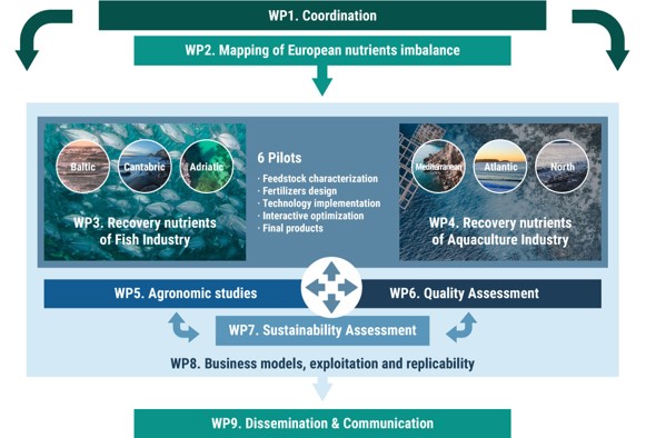 The general objective of the SEA2LAND project is to provide solutions to help overcome future challenges related to food production, climate change and waste reuse by improving and adapting technologies for nutrient recovery to produce bio-based fertilisers (BBFs) and Tailor Made fertilisers (TMFs) from fishery and aquaculture by-products generated in Europe.