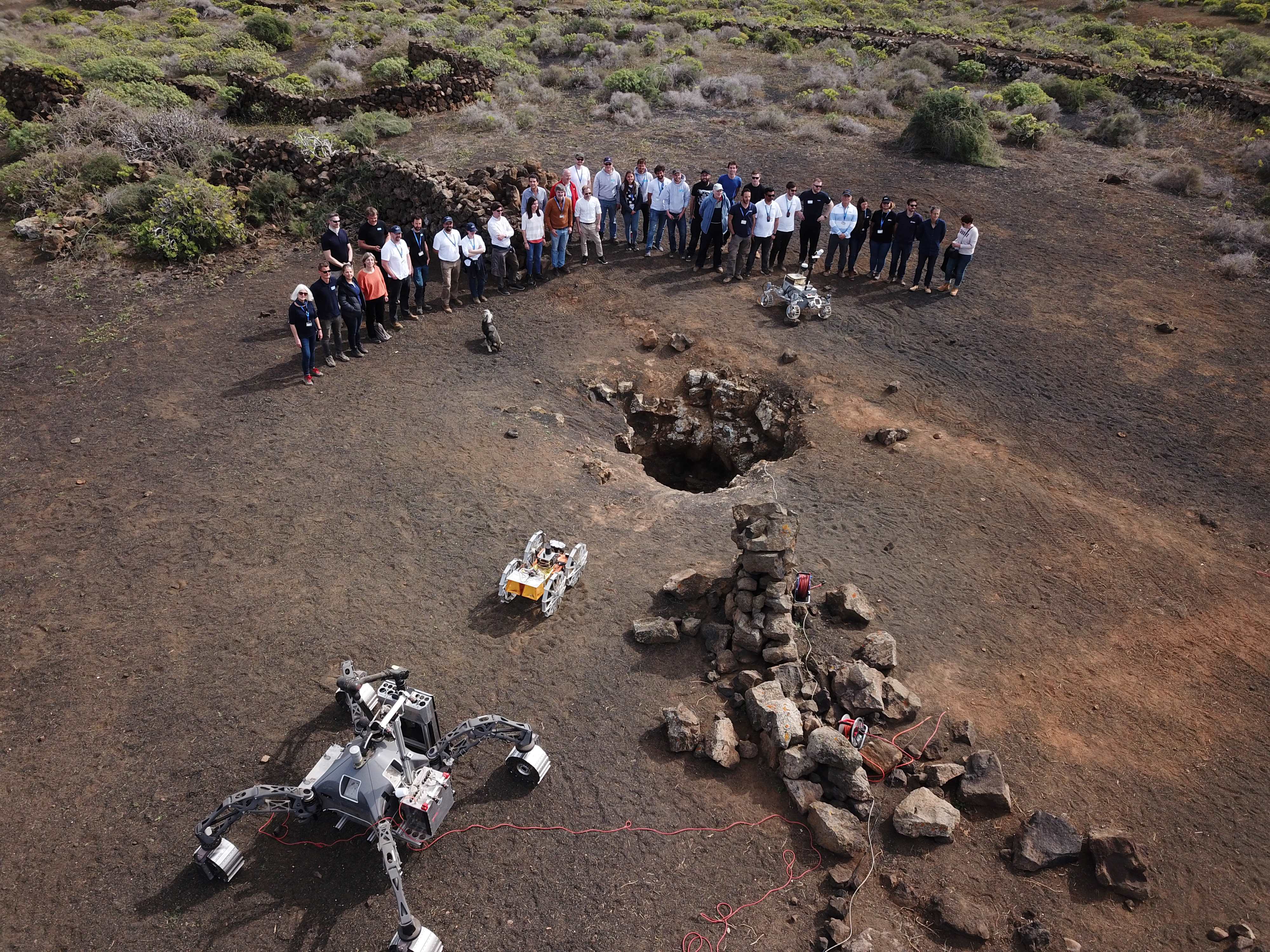 Finally, the CoRob-X consortium gathered for a 3-week field test in Lanzarote, Canary Islands. The capabilities of the robotic exploration team were demonstrated in a Lunar Analogue Mission that involved the exploration of a real, albeit terrestrial, lava tube. In parallel, the terrestrial CoRob-X robot team was demonstrated in a mine-tunnel in northwestern Spain.
