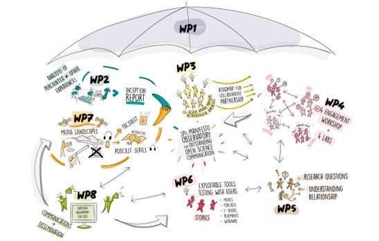 Through Engagement Workshops (EWs), Labs, field, landscape and participatory research, evaluation and testing phases, ENJOI co-designs and validates the SPIs. The SPIs are then condensed into a Manifesto for an OOSC that guides people who are producing, consuming, and sharing scientific information.