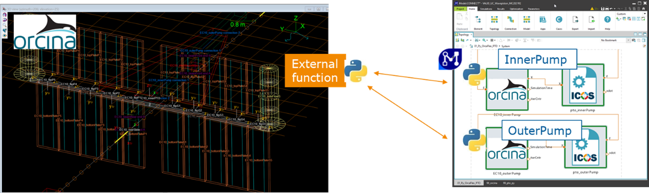 WP2, led by AVL, has gathered requirements needed for the wave energy sector by means of workshops, meetings, and questionnaire. AVL developed an interface for the simulation tool OrcaFlex and successfully tested it (Fig 1). Based on the basic concept for model integration with test beds (Fig 2), first prototypes namely for “feeding live data to the test bed” were implemented (Fig 3 and 4).