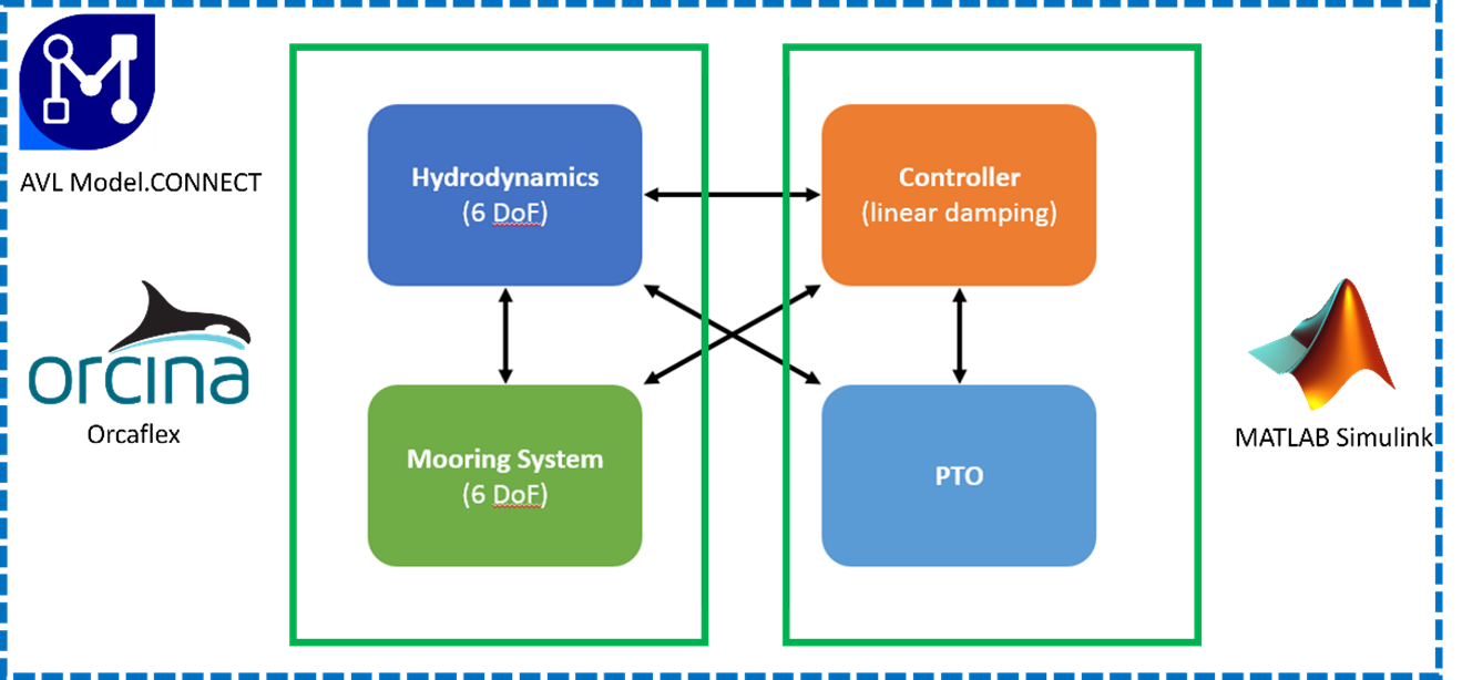 WP3, led by Corpower Ocean (CPO), has defined a testing program according to the methodology proposed in WP1, which focuses on four of the CPO dynamic sealing systems. AVL completed a demo of co-simulation with Simulink and Orcaflex, providing input on how to handle the hydrodynamic block of CPO’s W2W model (Fig 5). A study on use of machine learning for predictive maintenance of dynamic sealing systems is ongoing with a third party. CPO have been progressing with design and commissioning of the seal rig (Fig 6) such that the electrical connections and software overhaul have been completed.