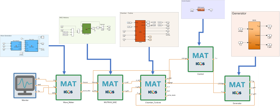 WP4, led by Tecnalia, has defined generator thermal fatigue testing according to the methodology proposed in WP1. It was identified that critical failure modes of electrical generators will focus on generator stator stresses, which cause winding failure. Upgrades for the OWC device are in progress and the generator working conditions have been quantified and power peaks characterized for accelerated tests. A fully coupled numerical model was created together with AVL (Fig 7).