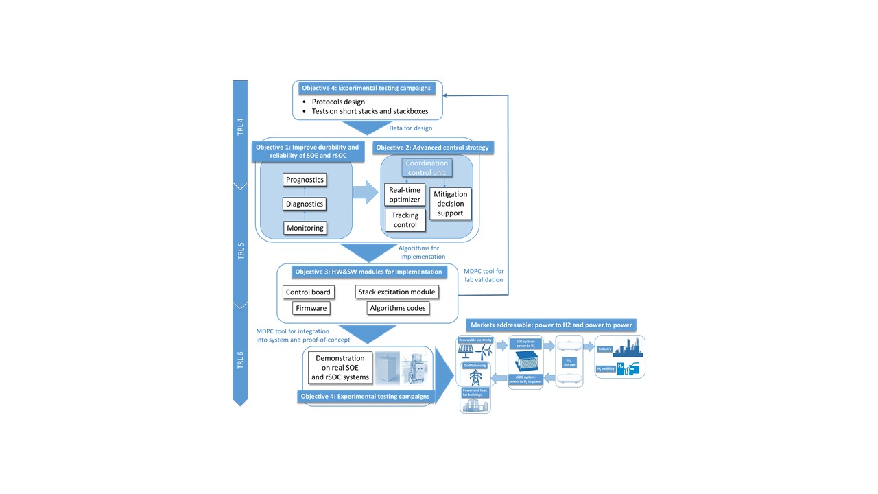 1. Improve durability, reliability, and maintainability of SOEC and rSOC stacks by developing innovative algorithms for diagnostics and prognostics of lifetime;