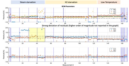 - the active one based on additional stack perturbation to get the stack dynamics in terms of the electrochemical impedance spectra (EIS). The diagnosis is pursued by interpreting the spectra by using e.g. Equivalent Circuit Models (c.f. Figure 9).