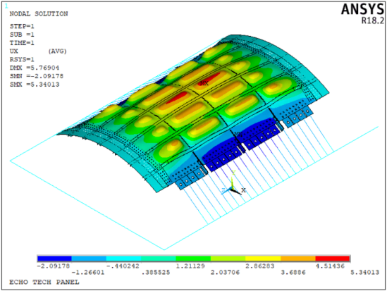 • Development of a new virtual test methodology to evaluate the influence of various boundary and loading conditions on curved panels representative of the conditions airframes are subjected to when under flight conditions.