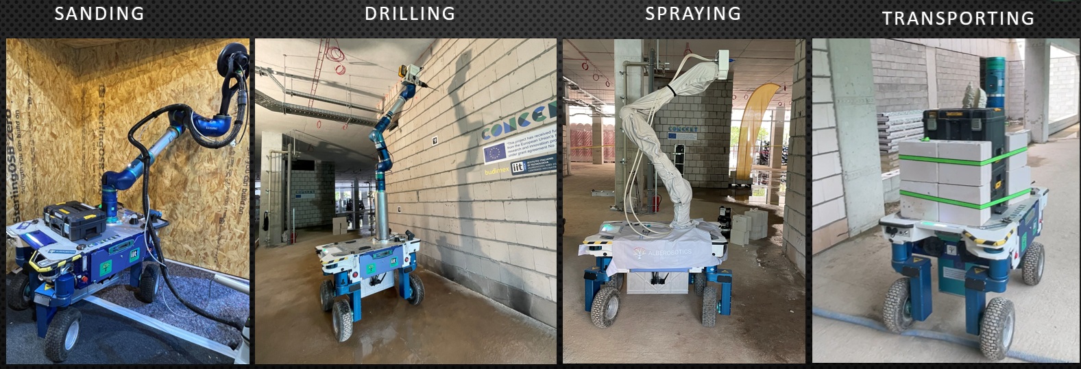 To demonstrate its impact, CONCERT validates its technologies in real-world construction tasks involving heavy payload handling, diverse and unstructured workspaces, and collaboration with human workers. These scenarios demonstrate how the CONCERT adaptable robotic solution can enhance efficiency and safety in physically intensive environments while improving the efficiency of the construction task process.