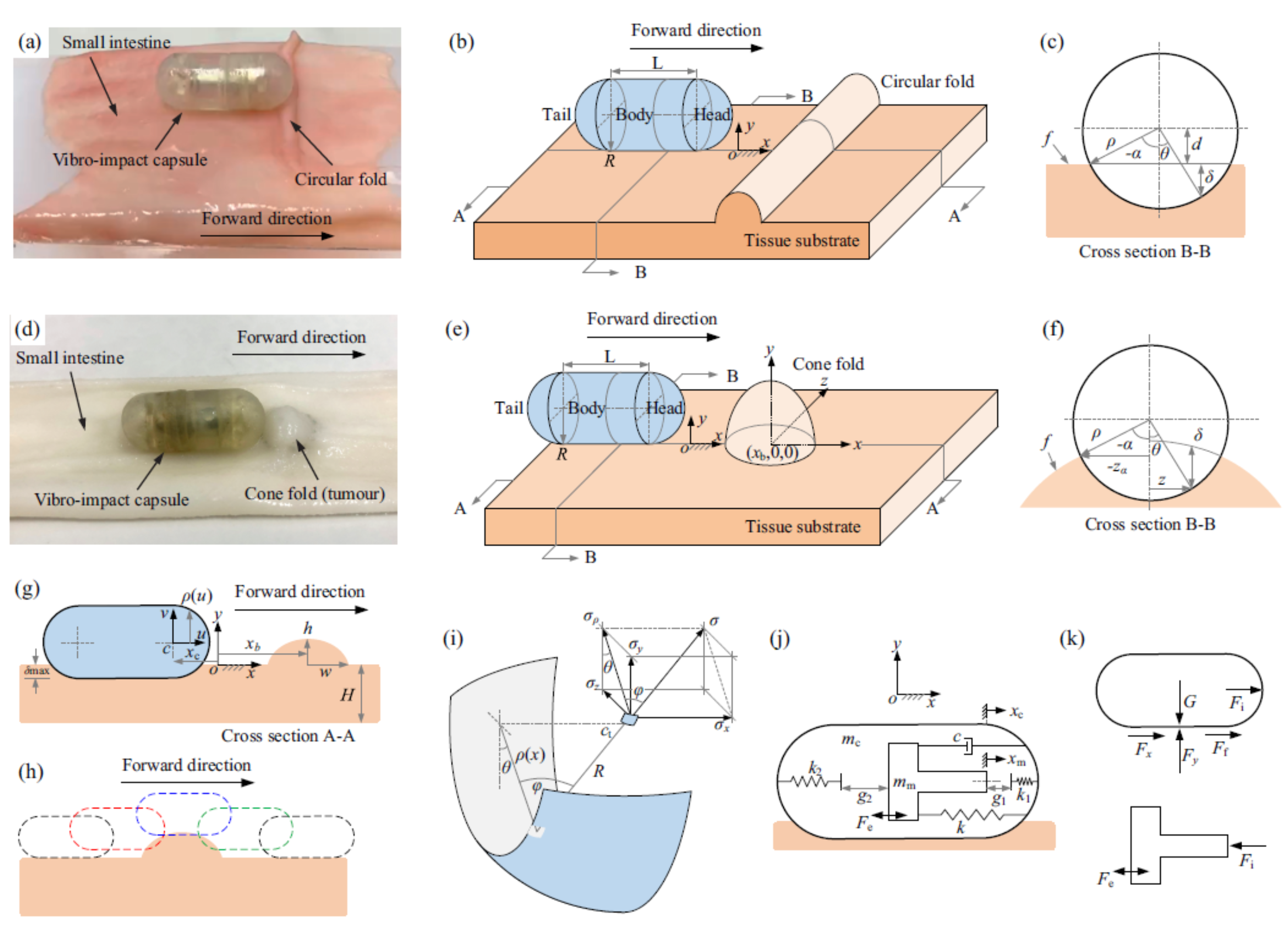 Considering the anatomy of small intestine involving lesions, circular folds and tumours are the major sources resisting the locomotion of capsule robot. By mimicking the small-bowel tumours as cone folds, the fellow then carried out a comparative study on the dynamics of the capsule robot in contact with different circular and cone folds. With the aid of GPU parallel computing and path-following techniques, extensive bifurcation and basin stability analyses are performed to identify different capsule-fold interactions and unravel the parametric influences on the robot, such as fold shape, Young’s modulus and robot’s control parameters (e.g. excitation period and amplitude). It was found that fold shape and Young’s modulus may only affect capsule’s dynamics significantly when robot’s excitation period is large. Two essential locomotion modes, a period-one motion with capsule-fold contact in the small region of excitation amplitude and a fold crossing motion in the large region of excitation amplitude, dominating the dynamics of the robot regardless of fold shape and Young’s modulus were observed. In addition, the instability mechanism of this period-one motion was revealed. The numerical study done by the fellow provides a solid basis for the locomotion control of the robot when encountering different types of circular folds and small-bowel tumours. It also offers the potential of utilising robot’s dynamics for bowel cancer detection.