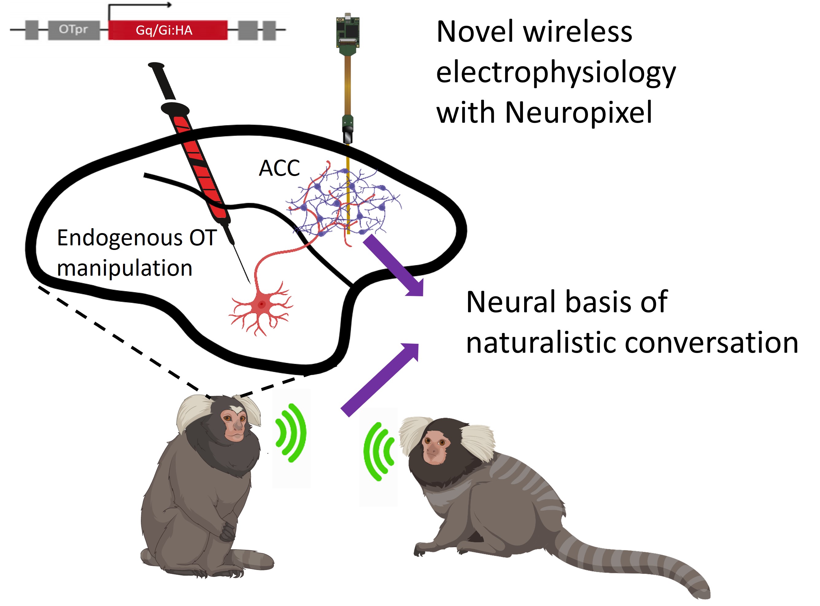 The main results are the successful development of a viral chemogenetic method to manipulate oxytocin neurons in the marmoset brain. This powerful tool can now be applied to manipulate marmosets' social behavior, notably vocalizations, but also opens new possibilities of research.