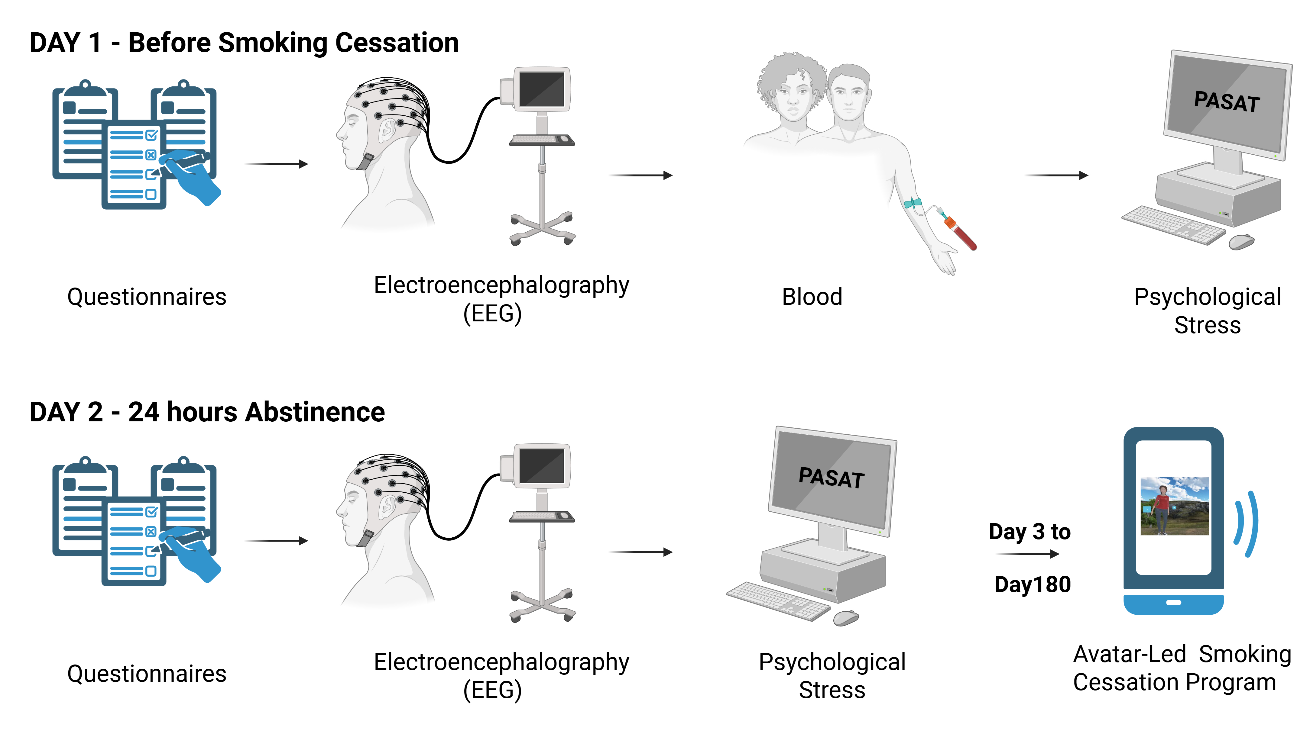 Scientific and clinical contributions: The BioNic project contributed to addiction neuroscience by demonstrating that stress-induced neurophysiological responses predict smoking cessation outcomes. The findings suggest that combining psychophysiological measures with neuroimaging data may improve understanding of individual treatment responses. This research supports personalized addiction treatment approaches and provides a foundation for future studies of neurobiological predictors in substance use disorders. The methodological framework offers new tools for studying the intersection of stress, emotion regulation, and addictive behaviors.