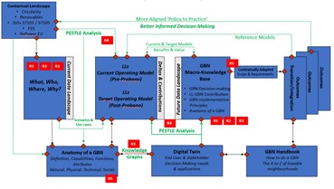The final GBN target model will provide a flexible yet robust framework for the transition to sustainability at neighbourhood level that can be adapted to different urban typologies, climatic conditions, and socio-economic circumstances. The Digital Twin's sophisticated platform will enable virtual exploration of sustainability pathways and support scenario planning and stakeholder engagement through interactive visualisation features. A standardised monitoring and evaluation framework will provide the empirical basis for assessing GBN performance and enable evidence-based refinement of approaches over time.