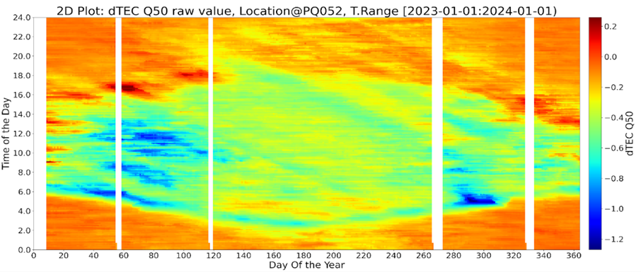 To approach the problem of MSTID forecasting, a climatology of the variability of detrended Total Electron Cnotent (TEC) was established (Figure 2), and extreme MSTIDs are considered present when the observed dTEC falls outside the middle quartiles of variability. This method was tested during periods of strong tropospheric disturbance over central Europe, and periods of substorm activity, when MSTIDs were known to be present from the analysis of ionosonde and Doppler sounding data.