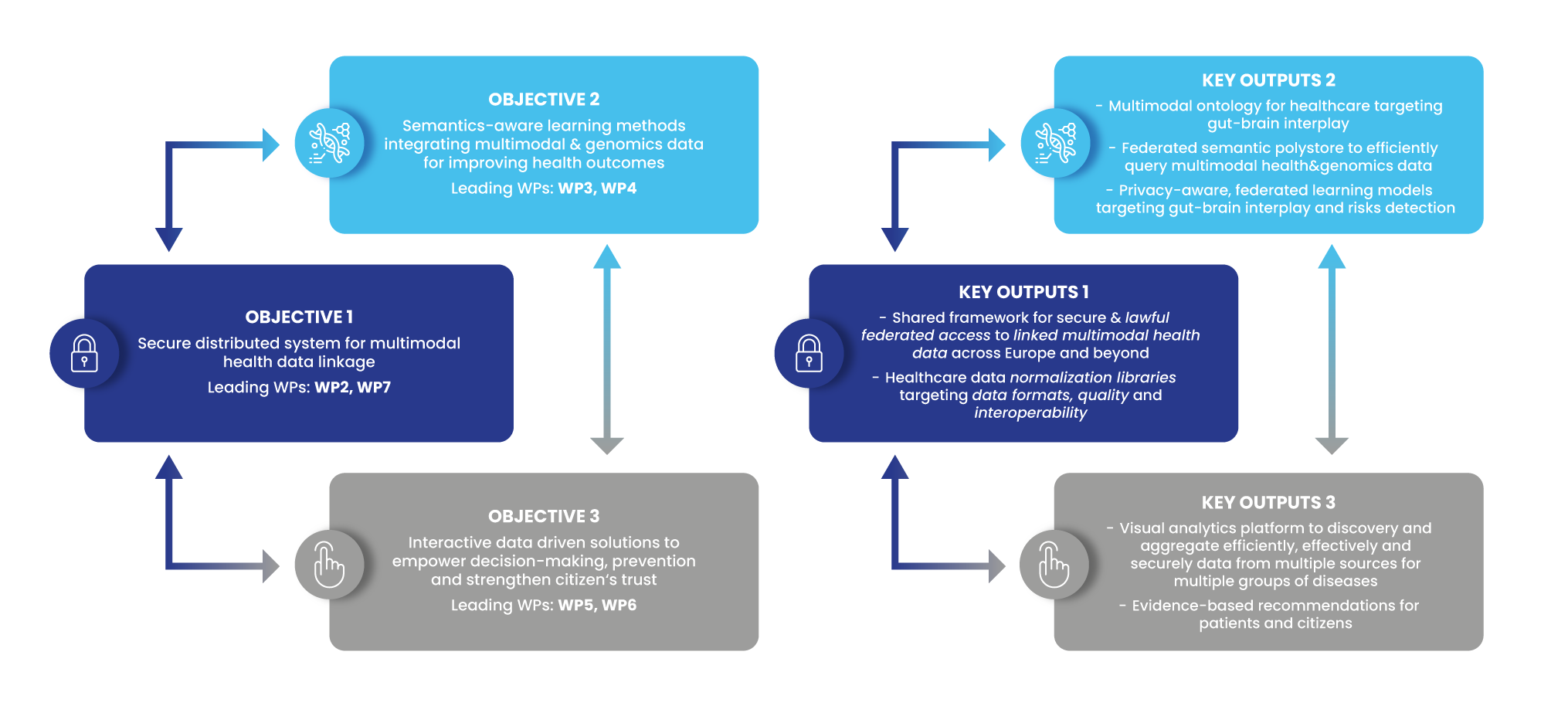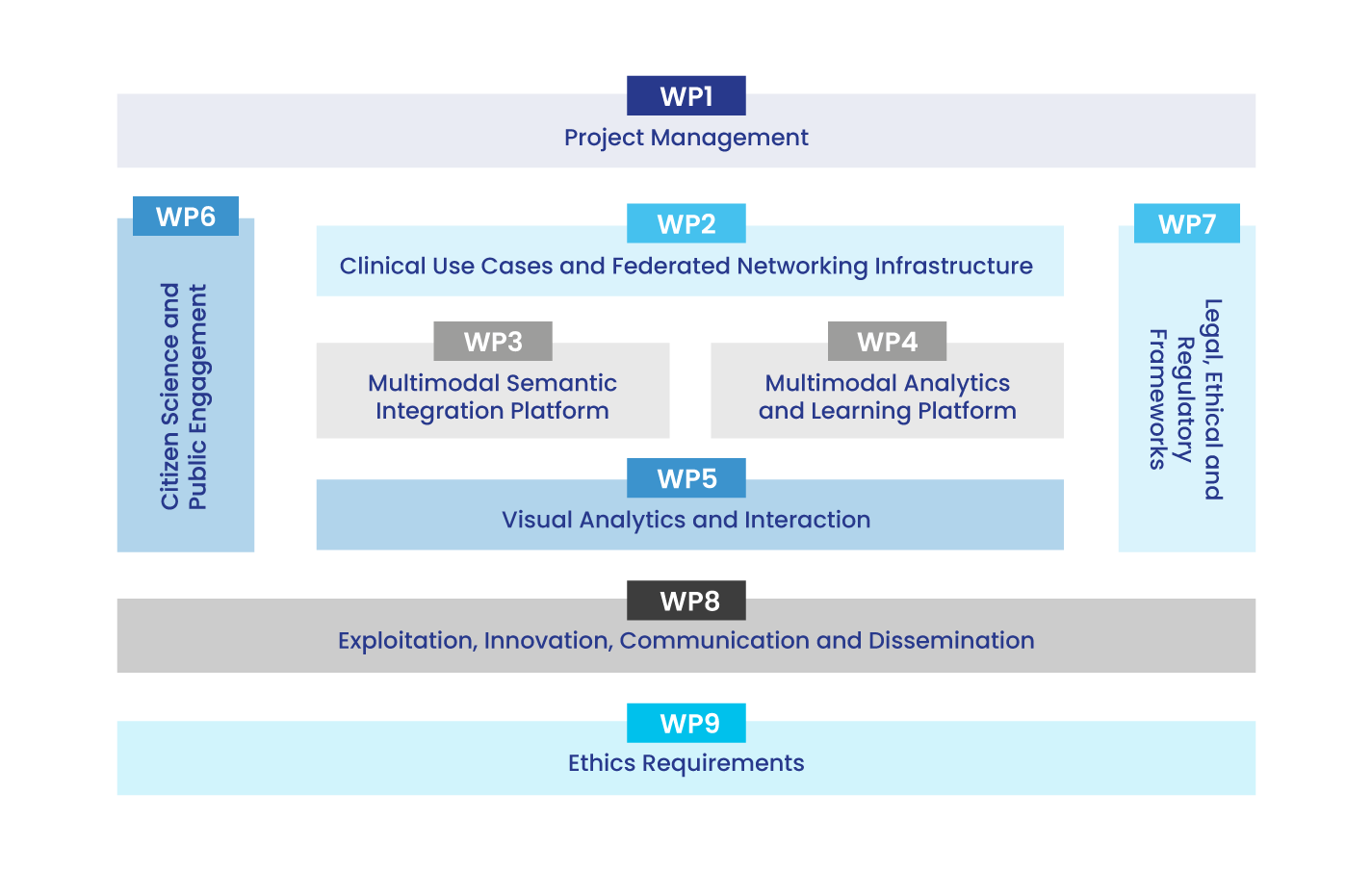 - User-centred decision tools: Provide visual analytics, open knowledge graphs, and multilingual terminology so clinicians, researchers, policymakers, and citizens can act on the insights with confidence.