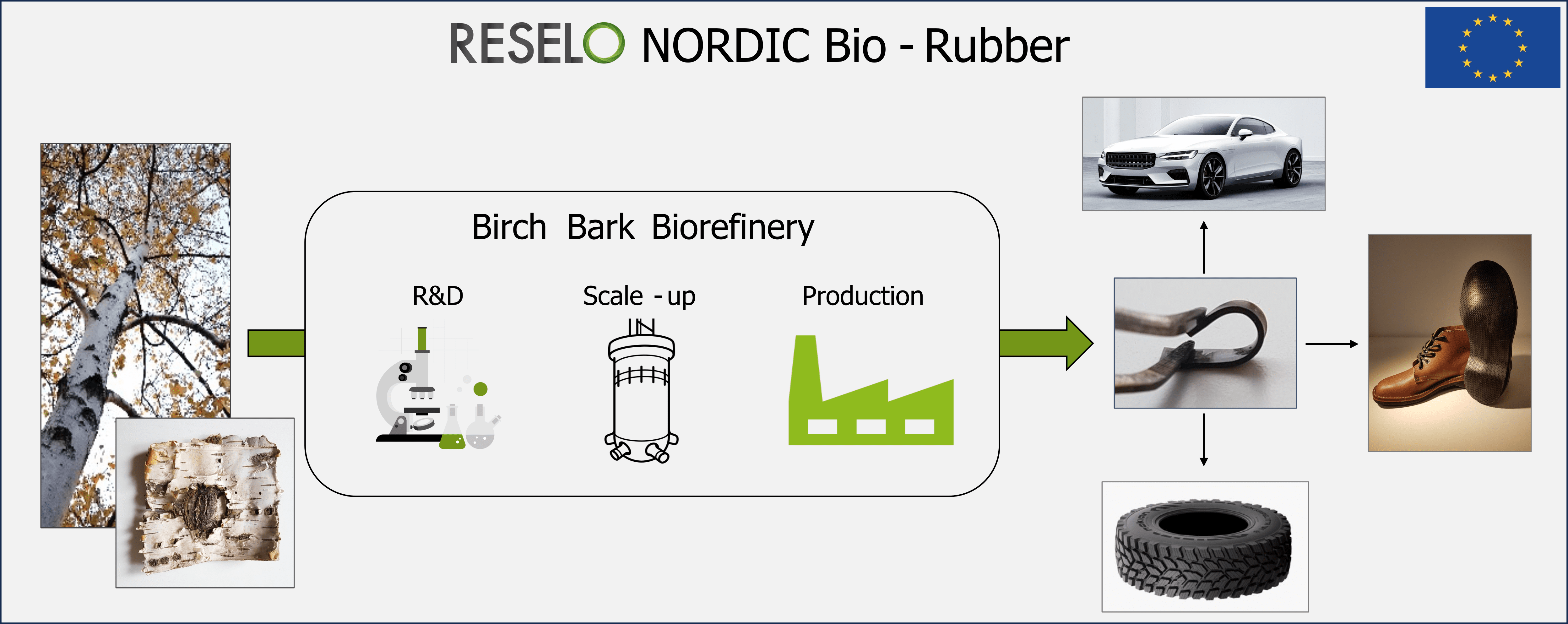 To phase out fossil resources and establish a truly sustainable bioeconomy, new biomass-based processes and novel biomaterials need to be developed. Previously, we have used a biorefinery approach to isolate different fractions from birch bark. Notably, from one of the isolated fractions we created a novel bio-elastomer called Reselo Rubber. This project aims to (i) prepare the technical industrialisation of our birch bark biorefinery process and (ii) build the basis for the market launch of our Reselo Rubber.