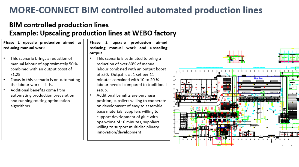 Geomatics were used to obtain a clearer building knowledge and more precise model to avoid design errors and costs increase during the construction process thanks to its higher precision. Geomatics could also be used in connection with BIM, but a significant amount of time is still needed for the processing of the data and translation of the information from a point cloud to simple a BIM model. A detailed SotA was developed for the application of BIM for building renovation and tools for energy analysis. To make deep renovation user-friendly and attractive for end-users, tools and platforms were implemented to support the decision making on renovation concepts and for modeling building and performance characteristics. Home owners can model different scenarios, choose the solutions that suit them better and understand which is the needed investment and the potential energy saving connected with their choice. The same tool can also be used by concept developers and suppliers to show their clients the consequences in terms of, for example, investment costs versus savings and added qualities. Their help could be very important for end-users to increase their awareness about energy use and potential improved energy efficiency of buildings. Also production lines were improved, especially in reduction of the production costs or in reduction of the need of manual work. Various areas of improvements were involved, such as processes related to the mass production, marketing and sales processes, logistics.