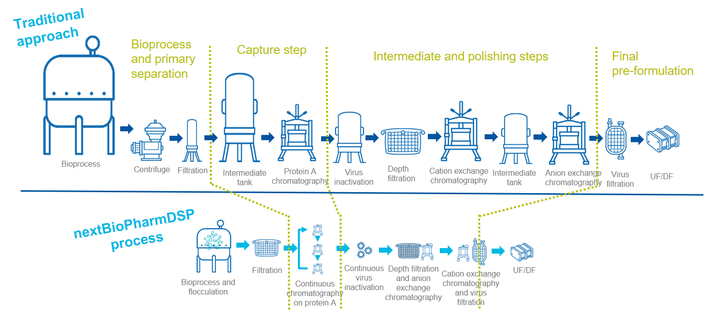 Large scale continuous and integrated process was successfully validated and showed many benefits. Most important ones were more efficient drug production processes, with reduced costs, and greater productivity, flexibility and competitiveness – ultimately leading to greater patient accessibility and lower burdens on healthcare systems. A second aim was to create a more sustainable process, with a reduction in the amount of consumables and water used, leading to reduced environmental footprint of the biopharma industry and reduced investment and operating costs for companies.