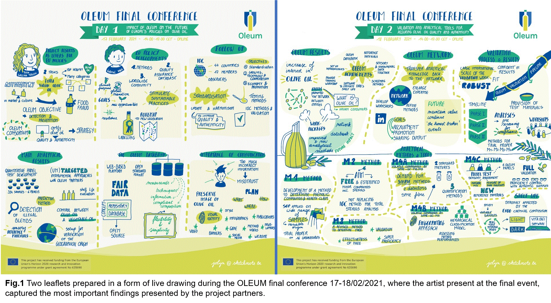 A wide range of national and international laboratories have been trained in the new procedures and are now part of a OLEUM network of analysts and laboratories interested in methods of analyses for olive oil: the OLEUM Linkedin group has over 140 members. For a wide communication and dissemination, the project website is regularly updated and newsletters have been released. Infographics to simply disseminate OO information, as well as a project video, were developed. Scientific articles (22) were published, as well as several others in popular and trade media, and the project results presented in conferences.