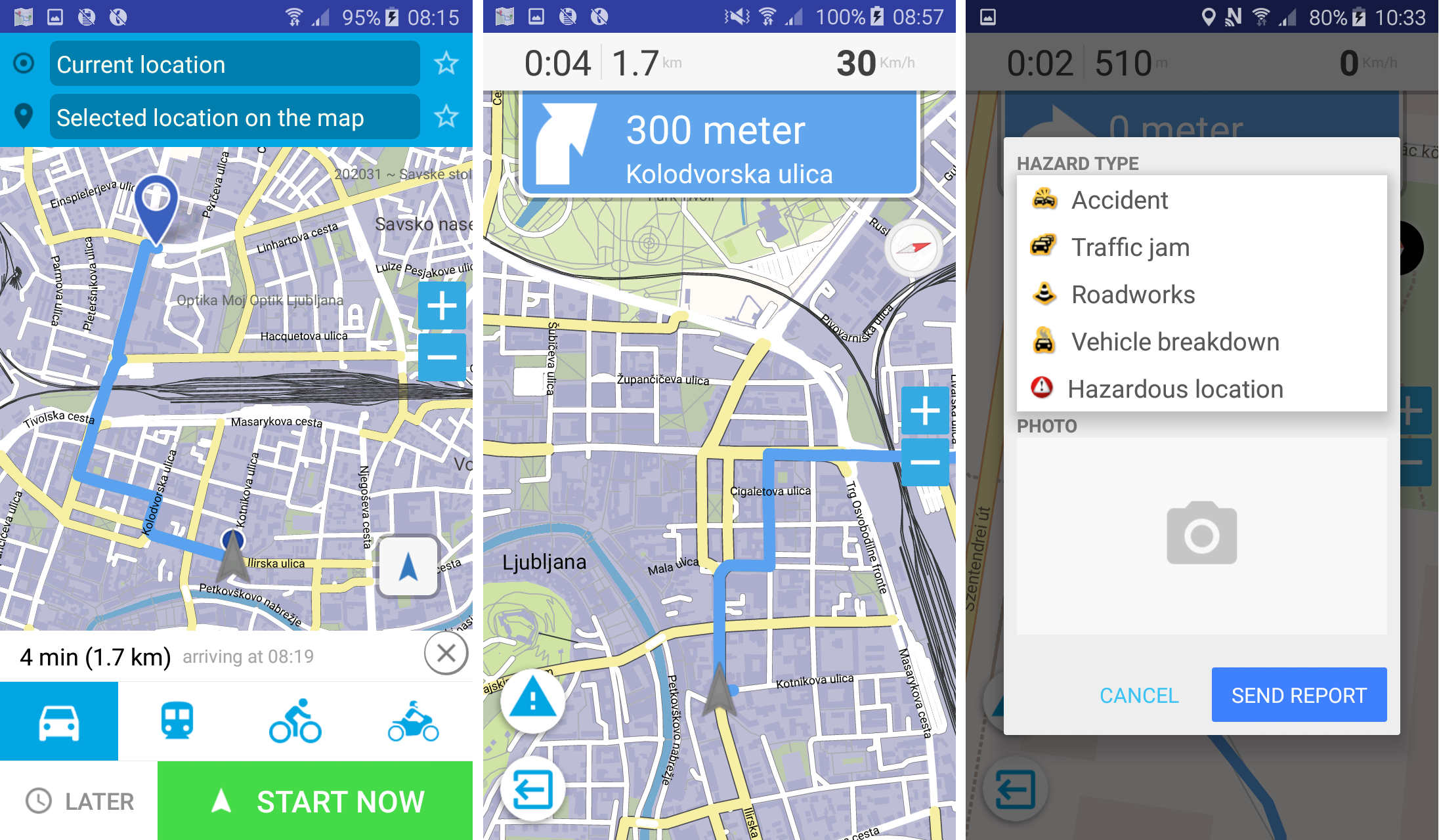- Real time traffic and traffic state prediction system: provides the traffic density and the traffic predictions in Ljubljana for a 15, 30, 45 and 60 minute horizon.