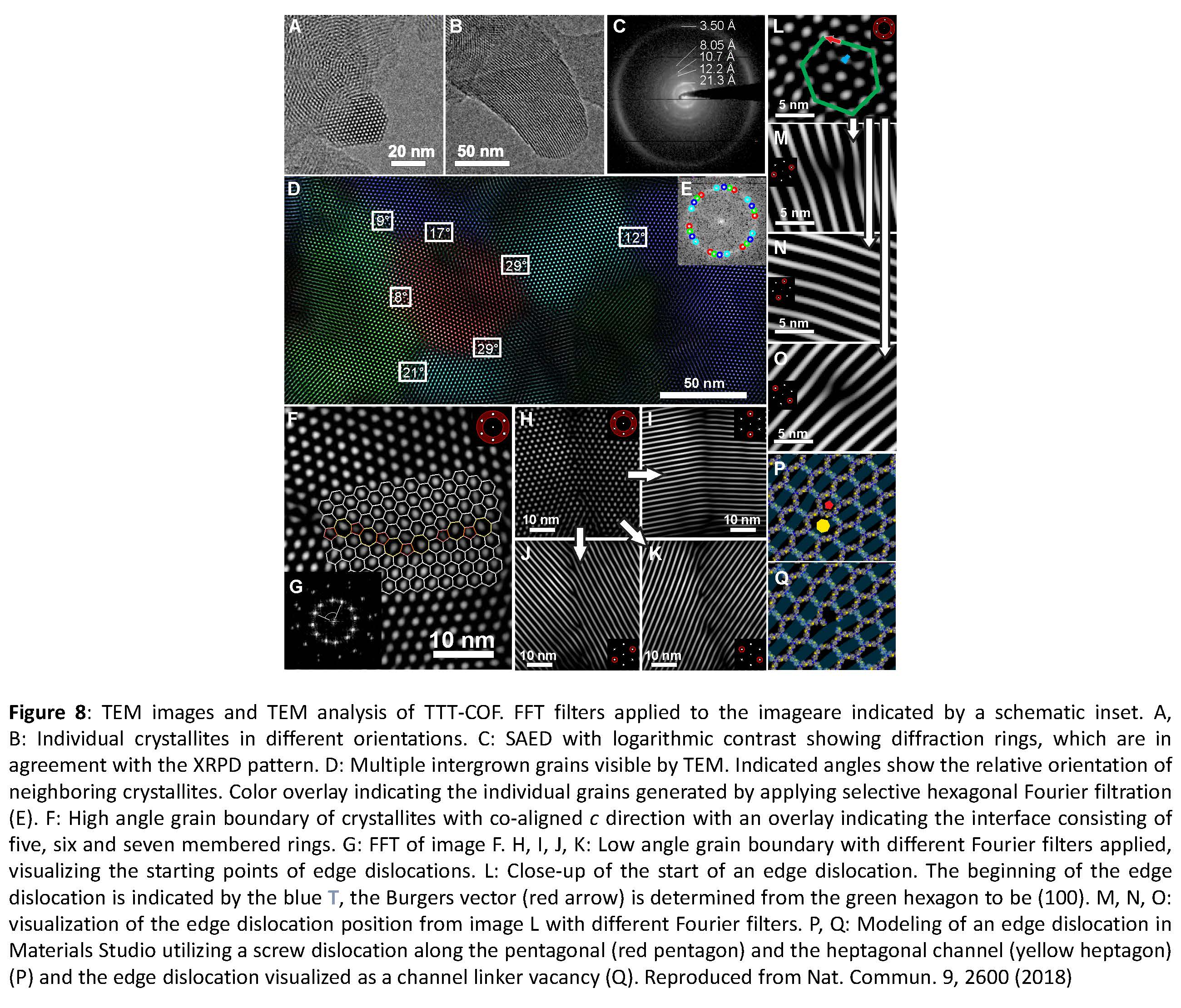 Post-synthetic stabilization of thiazole linked TTT-COF has enabled HRTEM analysis of real structure effects, including grain boundaries and edge dislocations (Nat. Commun. 9, 2600 (2018)). Defects and disorder can have multiple, intertwined functions affecting light harvesting, charge transport and catalysis. Thus, understanding their role is crucial to the rational design of an earth-abundant, artificial photosynthetic platform.