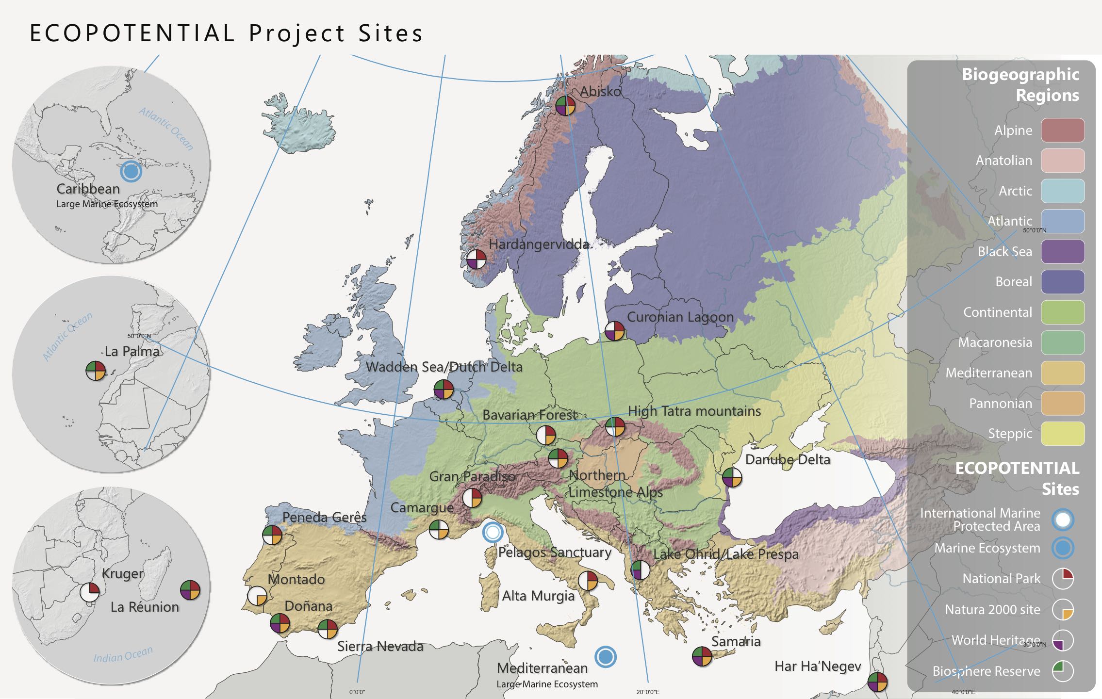 The project focused its research activities and pilot actions on a targeted set of protected areas, including mountain, arid and semiarid, coastal and marine ecosystems, assessing expected ecosystem changes and delivering products and tools based on Earth observation data, to facilitate monitoring ongoing changes and support PA effective management. A “whole-system” approach was followed, considering in detail biotic-abiotic interactions. The project implemented climate-driven ecological models able to generate future ecosystem projections, complemented by corresponding uncertainty estimates. The project considered changes in provisioning, regulating and cultural ecosystem services and policy developments, included citizen science activities and supported capacity building and outreach activities with the PA personnel.