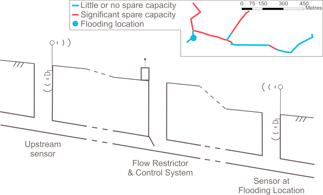 The CENTAUR (Cost Effective Neural Technique to Alleviate Urban flood Risk) project has developed a system to alleviate urban flood risk by more effectively using the existing storage volume in sewer networks. It is a significantly less costly and more resource efficient solution than building new drainage infrastructure. This innovative and adaptable technology works by controlling the flows in sewers with a Flow Control Device (FCD) which is operated by a local monitoring and control system (LMCS). The LMCS is driven by an Artificial Intelligence (AI) algorithm that uses live measured water level data to make control decisions. It operates autonomously using locally collected in-sewer water level data to deliver flood risk reduction. Previous real time control systems for sewer networks have been centralised, large, complex and costly and have been applied over a large area.