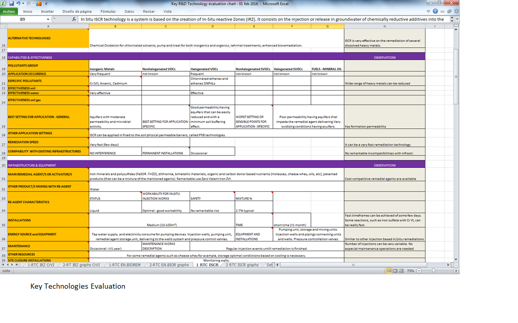 There are many patented technologies, and not many available on the market, but it seems they are not efficiently applied, because of the price, time, and because they are not integrated into viable joint solutions for large areas. The most widespread solution is to dig and dump, but it is very inefficient for these large areas so we need on site solutions and 'in situ' for joint decontamination of heavy metals, hydrocarbons, PAHs, TPH, etc ... However, we note that the market is stagnant for the last decade and the cause is that there is not a demand capable of make profitable these technological developments.