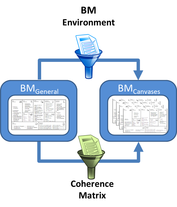 3. The general Business Model and the Coherence Matrix (see DECI Business model image): the methodological approach to the design of a new technological, service and organizational model for elderly people affected by MCI and MD in every EU Country and its evaluation. The Consortium designed a Coherence Matrix that supports each EU Country in defining its own business model, according to its specific needs. The tool also underlines the common needs and technological functionalities among the different EU Countries.