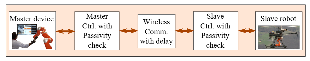 – Telemanipulation with force feedback, stability and bilateral control with passivity checks (Fig. 7) and also methods for dynamically constrained tele-aerial manipulation.