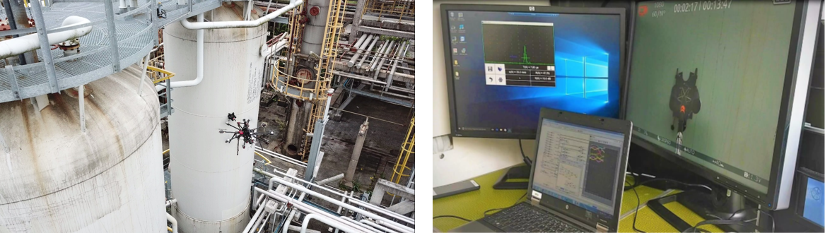 2) Validation in the industrial environment, including contact sensing while flying (Fig. 2), permanent sensor installation and deployment of a mobile robotic systems
