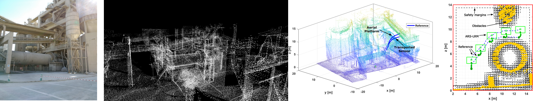 We also integrated and demonstrated for the first time the integrated planning, perception and control of aerial manipulators in an outdoor environment and also in an industrial environment where we demonstrated SLAM in GNSS industrial denied environment by means of an on-board LIDAR (Fig. 13) by using the map for the planning of the industrial manipulator.