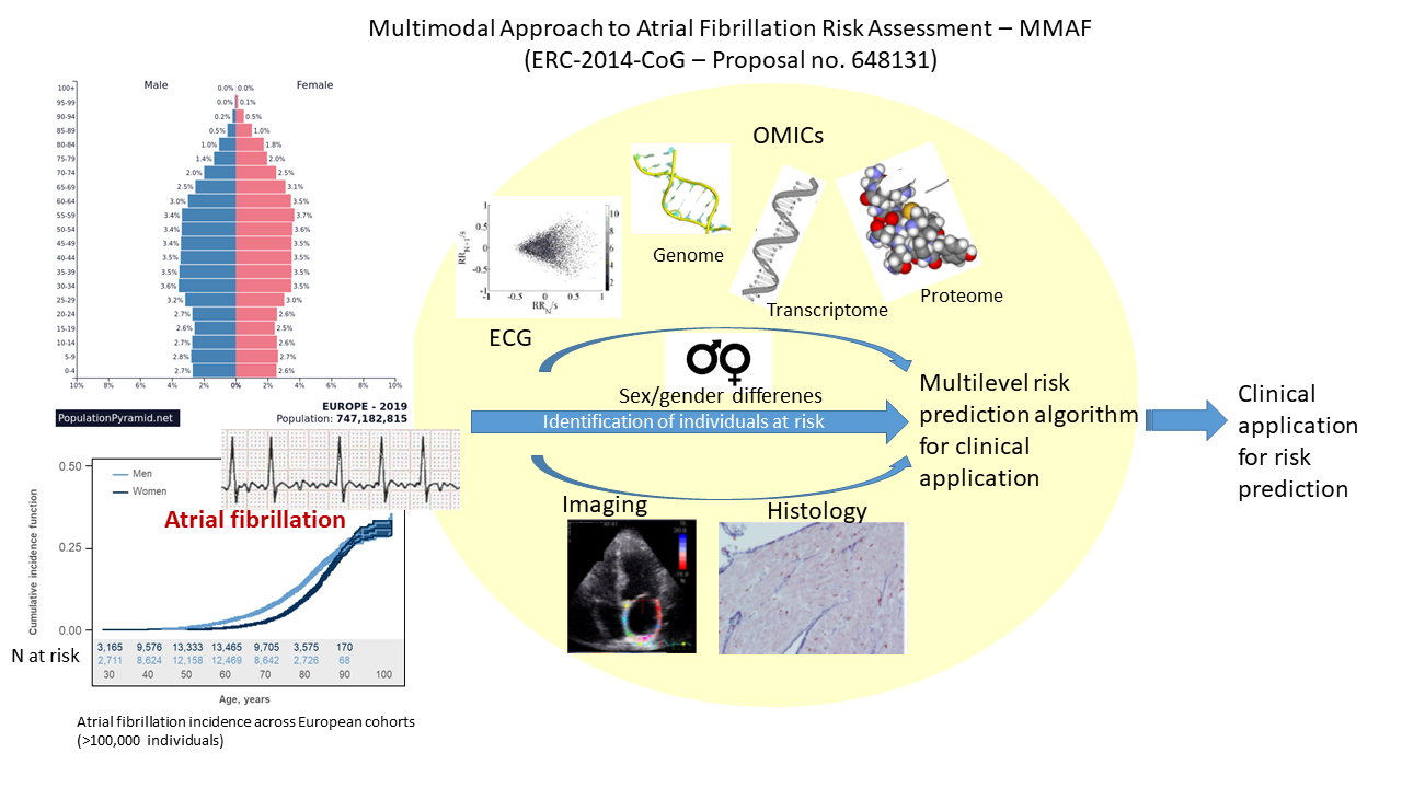 Exploitation of omics has provided novel pathophysiological pathways that will be addressed in detailed work-up. Overall, we will be able to improve risk prediction of atrial fibrillation using a multimodal approach with the aim to help prevention of disease, thus reduce morbidity and improve wellbeing in aging societies.