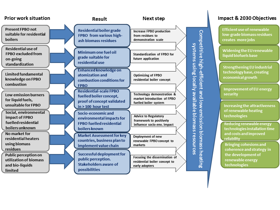 - use of FPBO in other applications, e.g. Combined Heat and Power generation in EU Horizon 2020 Project SmartCHP. The knowledge that has been generated in this project with respect to the combustion and processing of FBPO will give a headstart to the SmartCHP project.
