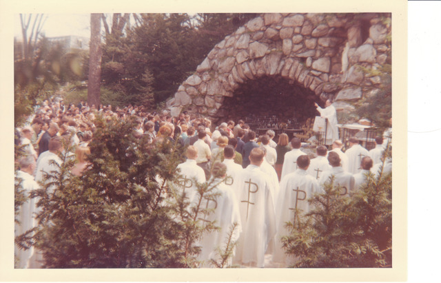 Charismatic conference Mass at the Lourdes Grotto, University of Notre Dame (Spring 1968?)
