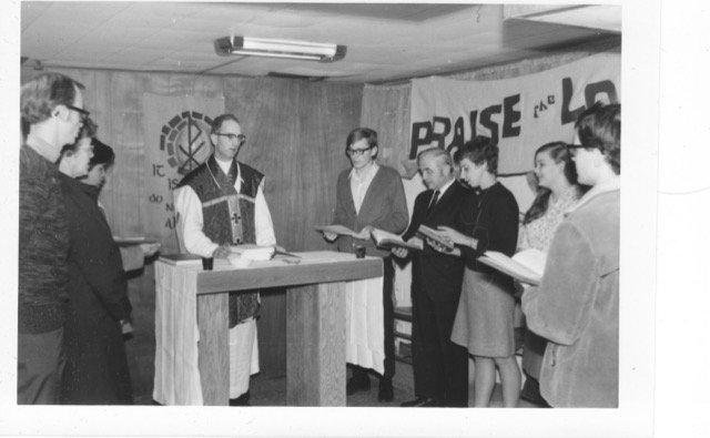 Fall 1969, University of Notre Dame.Fr. O’Connor is saying Mass in the basement chapel of True House
