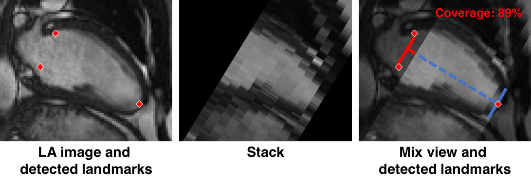 2) a learning-based technique for the fully-automated estimation of the heart coverage for CMR image stacks. This technique allows the identification of CMR image stacks that do not cover the whole left ventricular region (see Fig.2). The technique was tested on a large subset of the UK Biobank containing 3000 CMR stacks. The obtained results show the robustness and the accuracy of the proposed technique, which could be exploited in the clinical routine. Scientific dissemination was performed with a presentation at an international conference (FIMH 2017) together with an accompanying short paper;