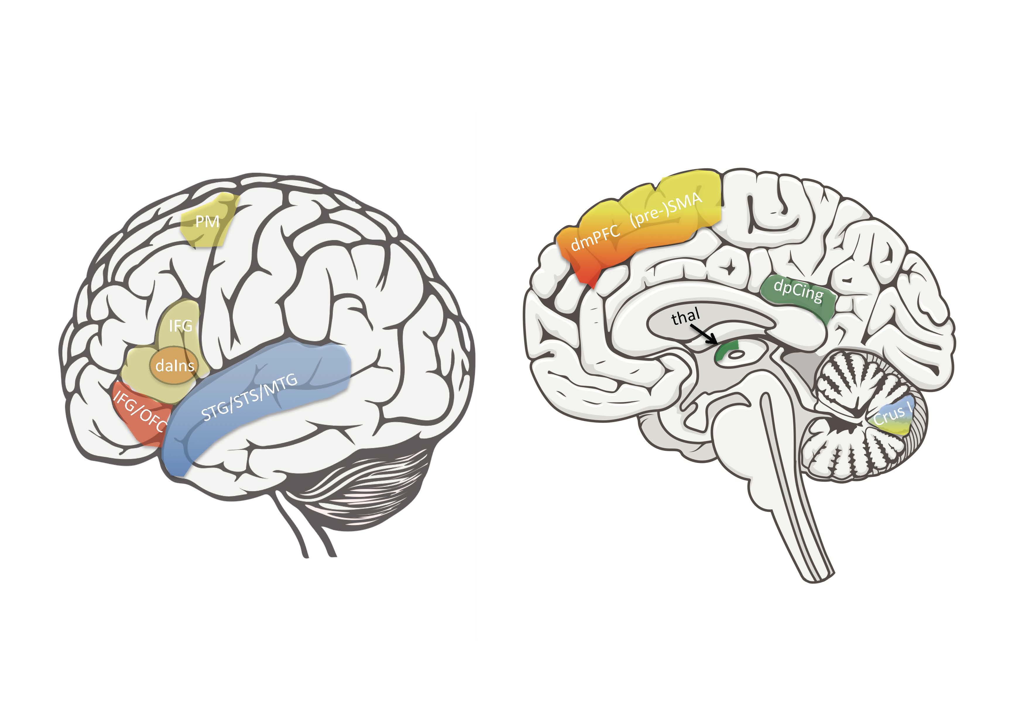 2. We developed an empirically based neural model of infant cry perception, and for the first time, we could compare neural processing of infant cry sounds between males versus females, and parents versus non-parents (Witteman et al., 2019). We found involvement of the auditory system, the thalamocingulate circuit, the dorsal anterior insula, the pre-supplementary motor area and dorsomedial prefrontal cortex and the inferior frontal gyrus in infant cry perception, but not of the reward pathway. Structures related to motoric processing, possibly supporting the preparation of a parenting response, were also involved. Females (more than males) and parents (more than non-parents) recruited a cortico-limbic sensorimotor integration network, offering a neural explanation for previously observed enhanced processing of infant cries in these sub-groups.