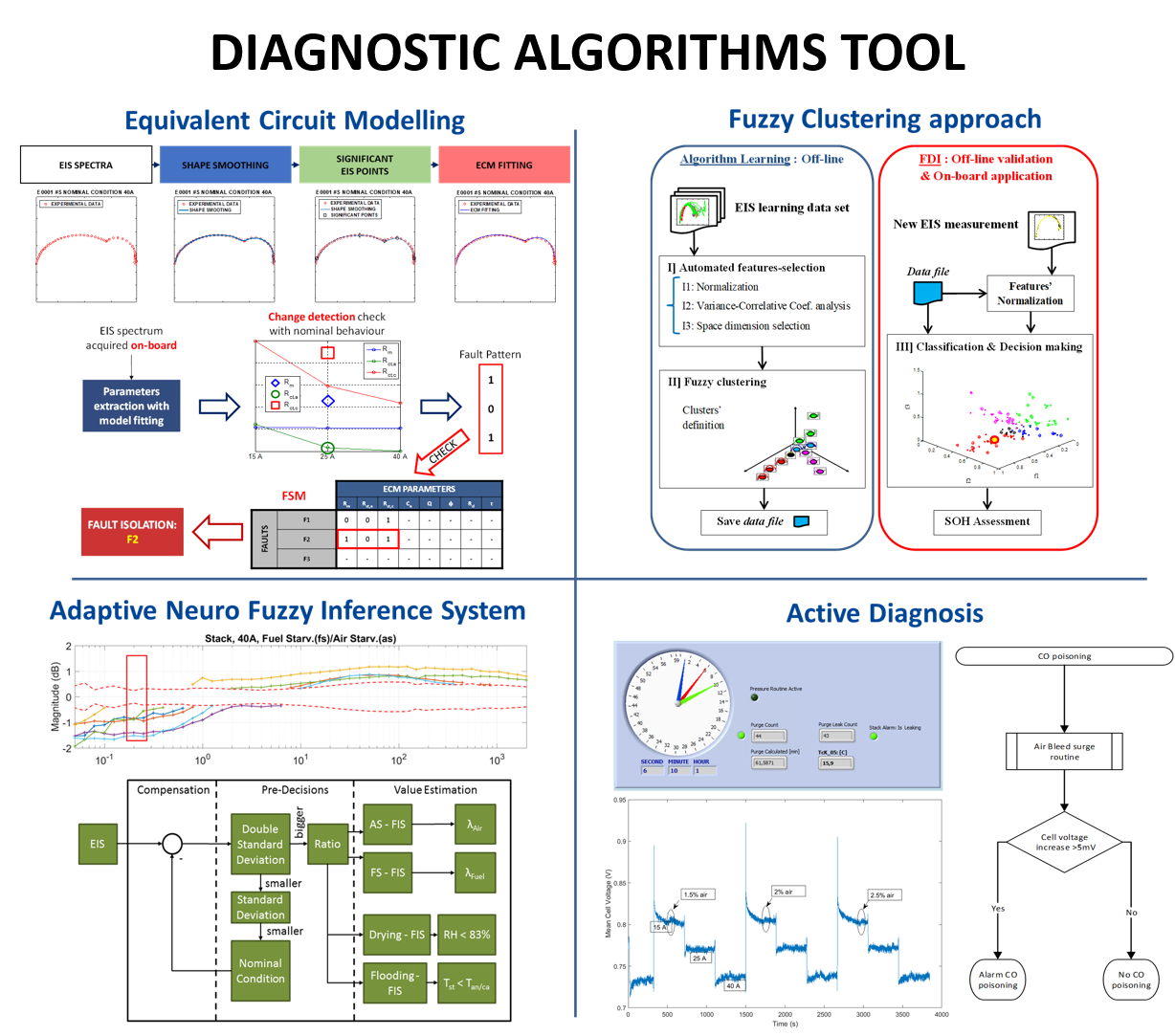 The purpose of the diagnosis is to promptly detect and isolate specific faults within the FCs, to avoid any performance reduction or at least to hinder the irreversible degradation of the system and the consequent failure. As a result, the overall performance of the FC will improve, thus enhancing the deployment of these systems with a reduction of their operational costs.